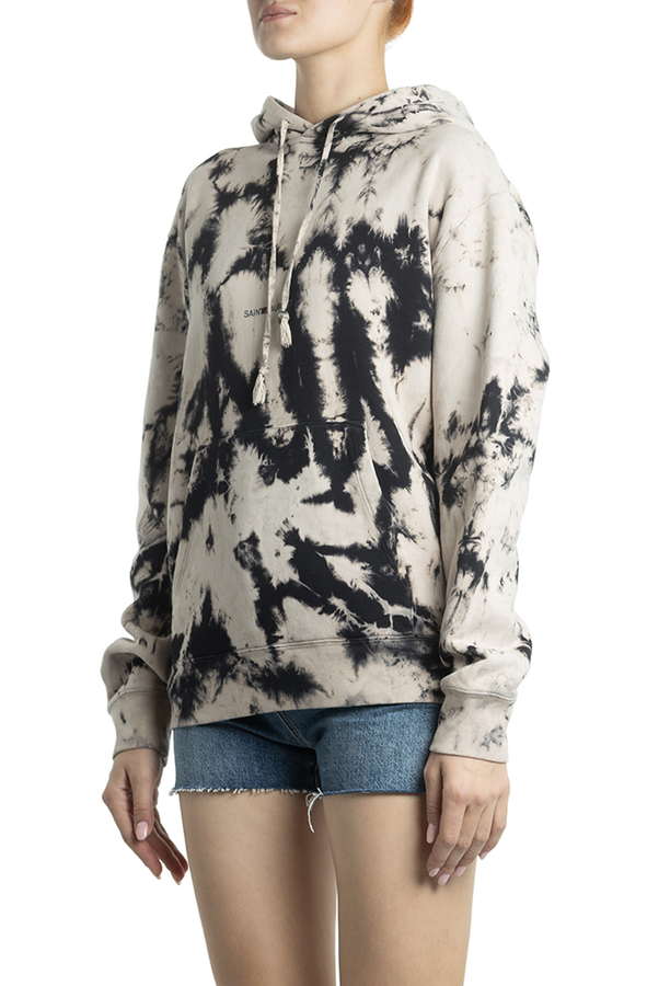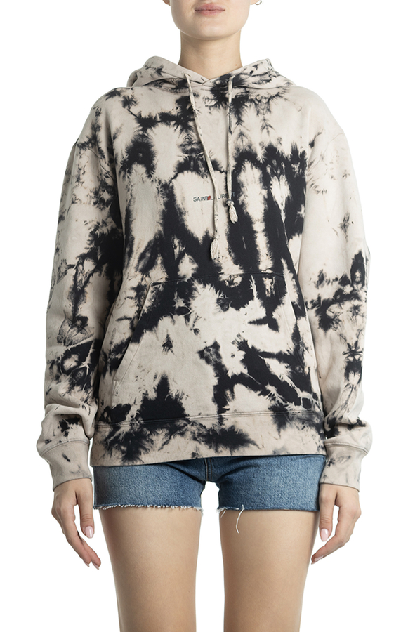 - Худі з логотипом tie-dye. З логотипом SAINT LAURENT спереду, капюшоном на шнурці, довгими рукавами, ребристими манжетами і подолом та кишенею спереду.