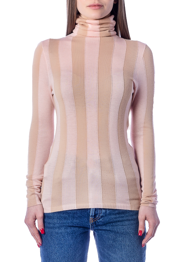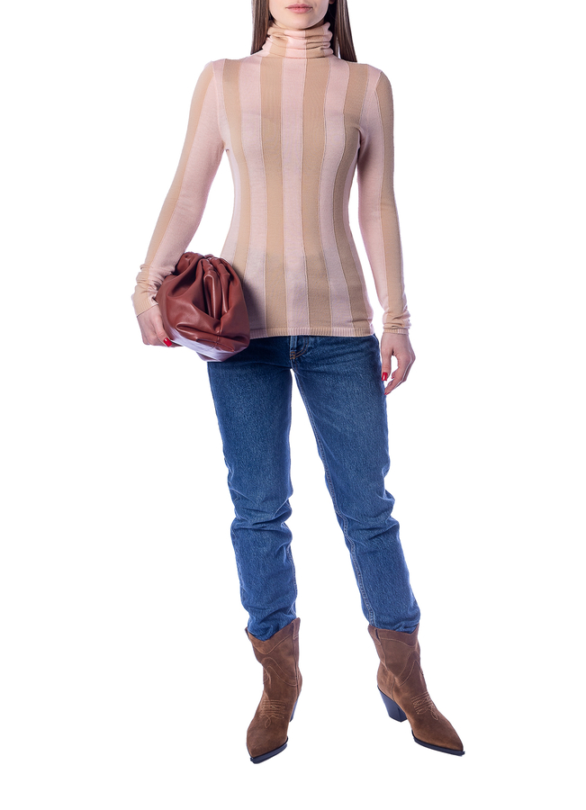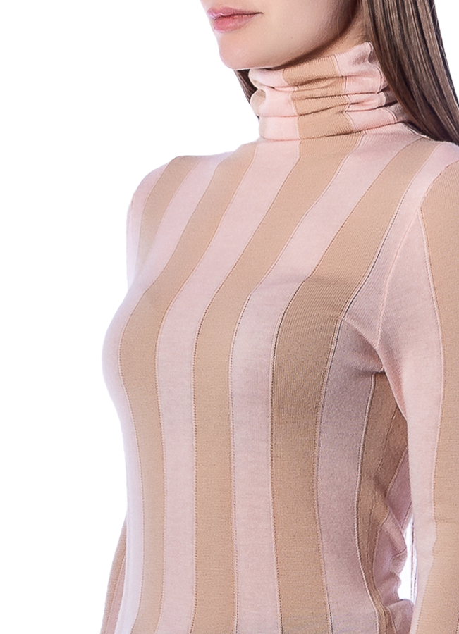 • Светр з високим коміром, візерунок в широку смужку. Довгі рукави та прямий поділ.