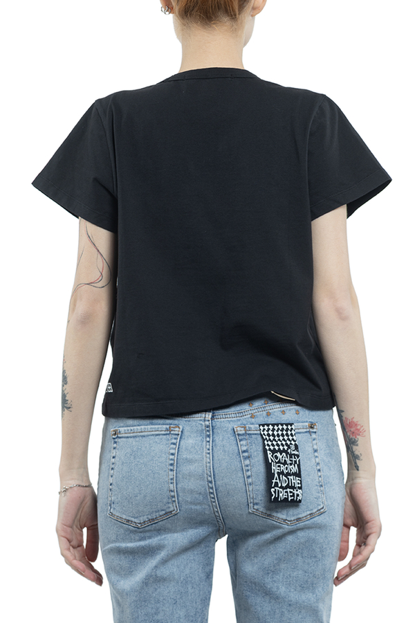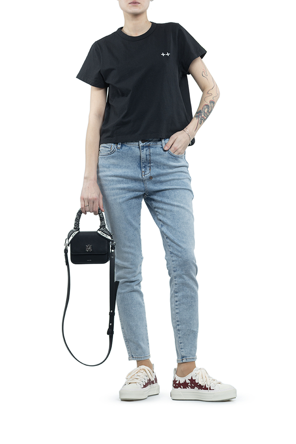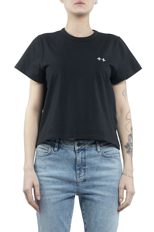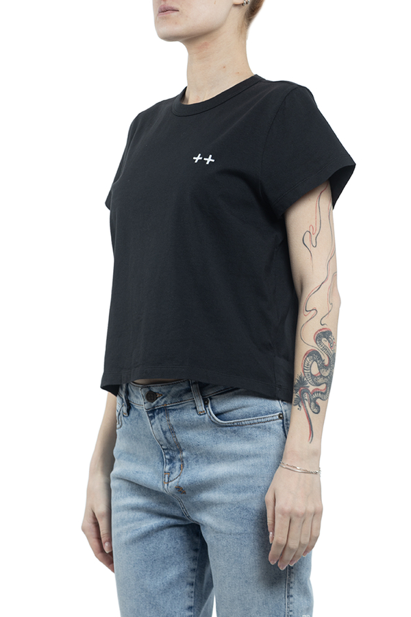 - Міні-футболка Plus Plus від Ksubi. Вузька облягаюча футболка, круглий виріз шиї, короткі рукави, два вишиті хрестики зпереду.