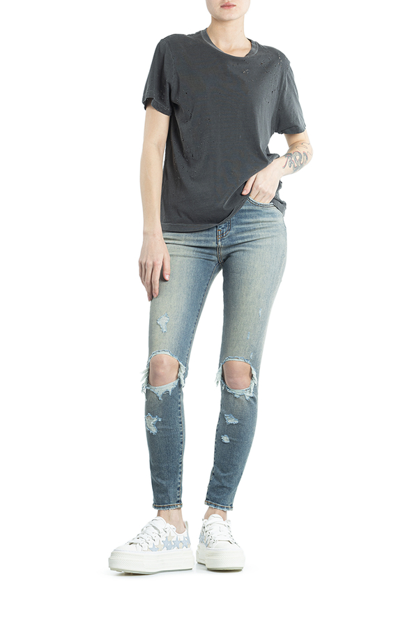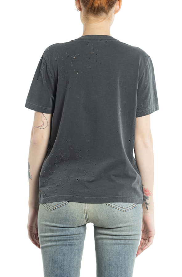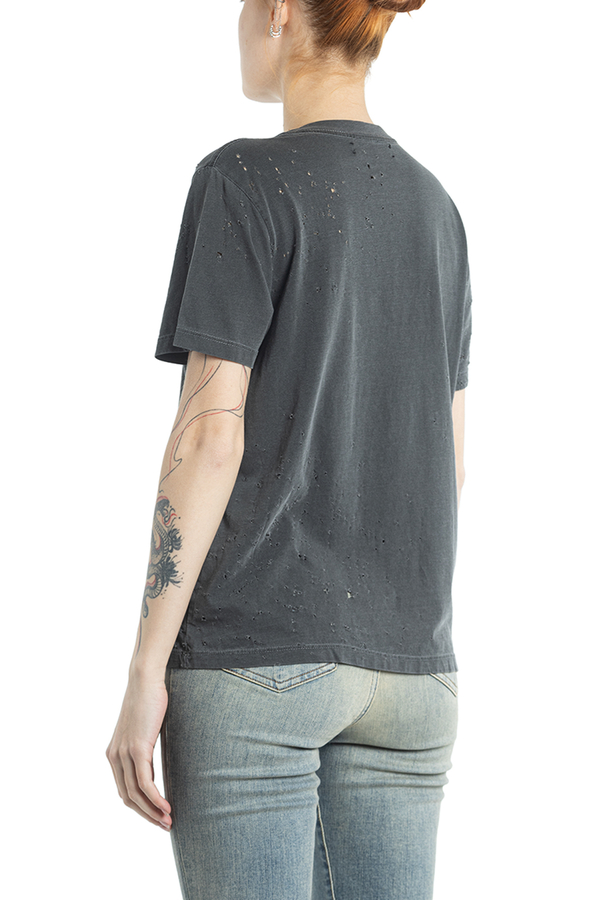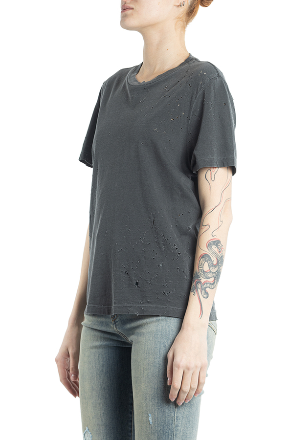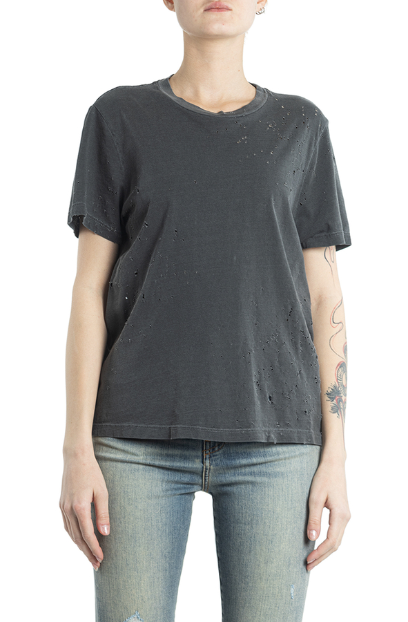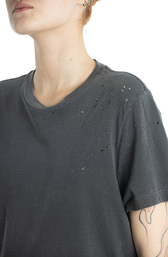 - Бавовняна футболка з короткими рукавами і круглим вирізом горла. З дрібними дірочками.