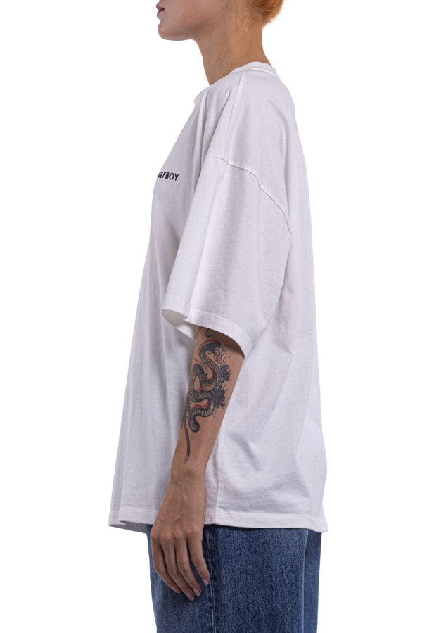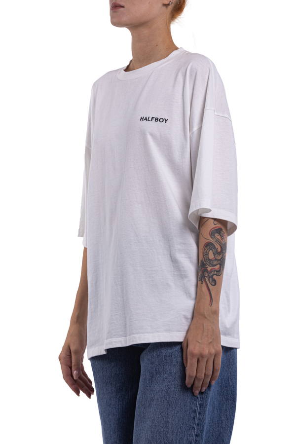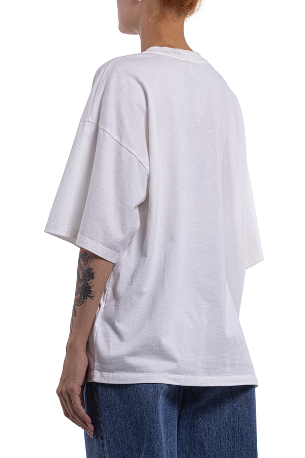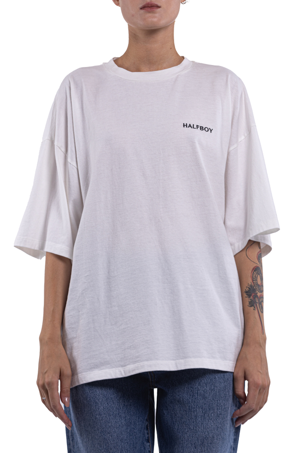 - Футболка із заниженими плечима, кругле горло, на грудях вишивка із назвою бренда