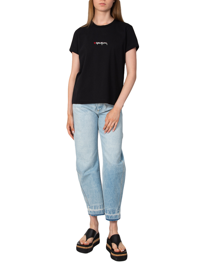 - Футболка з короткими рукавами, кругле горло, на грудях вишитий логотип