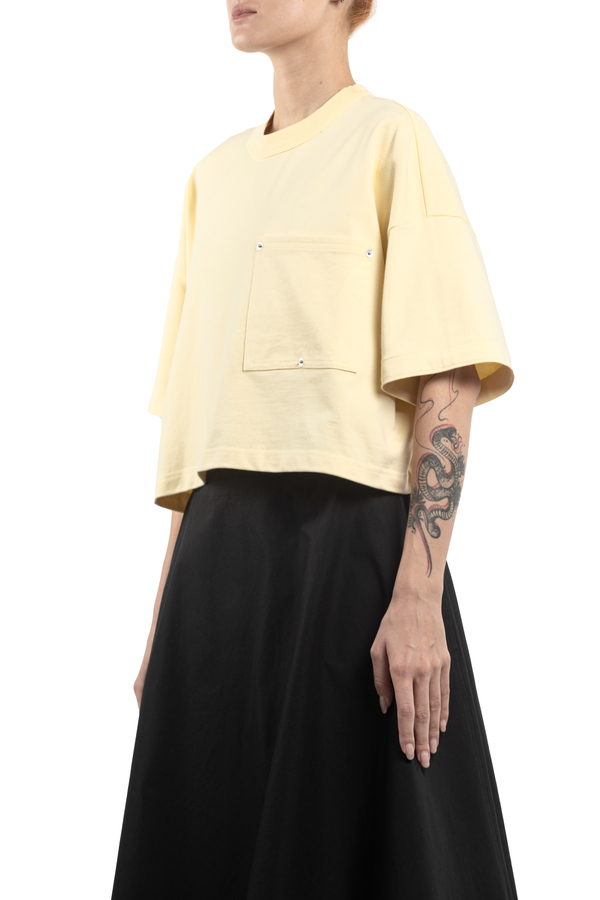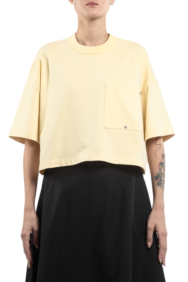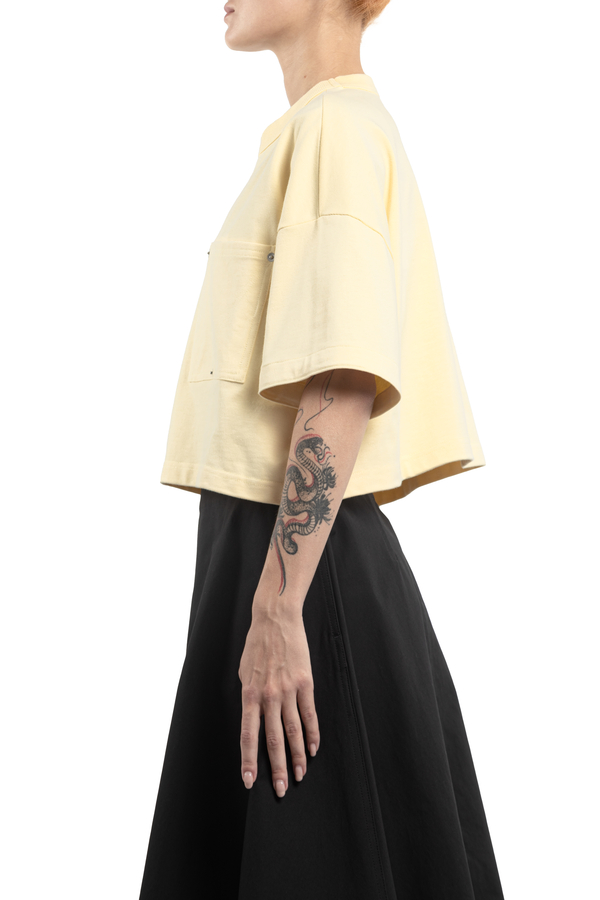 - Футболка з короткими рукавами вільного крою, кругле горло, нагрудна накладна кишеня