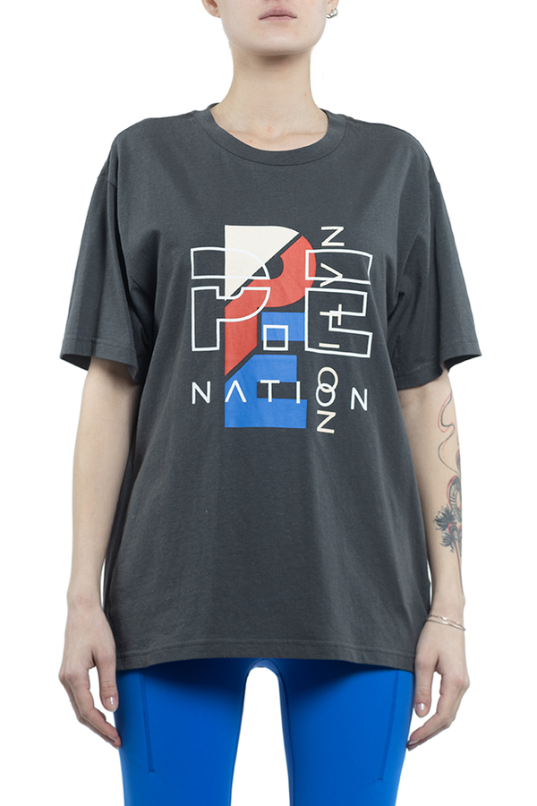 - Футболка з короткими рукавами, круглий виріз горловини, принт логотипу спереду