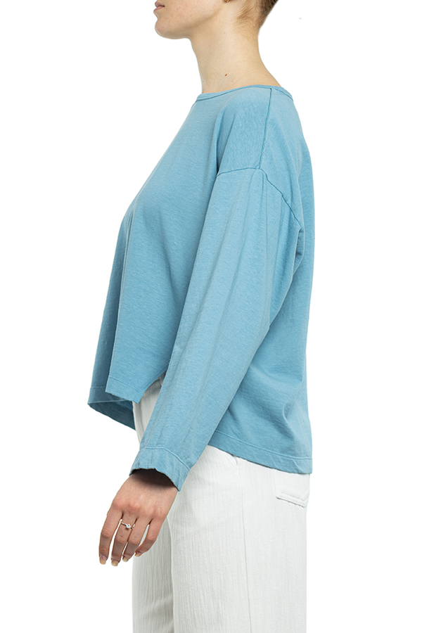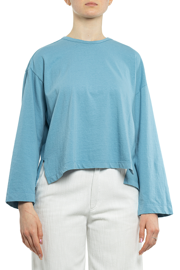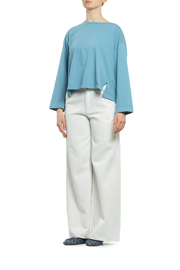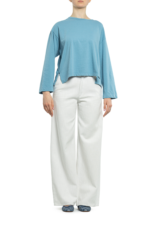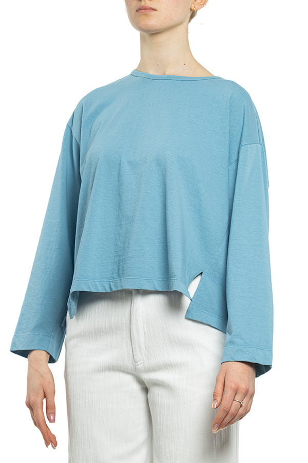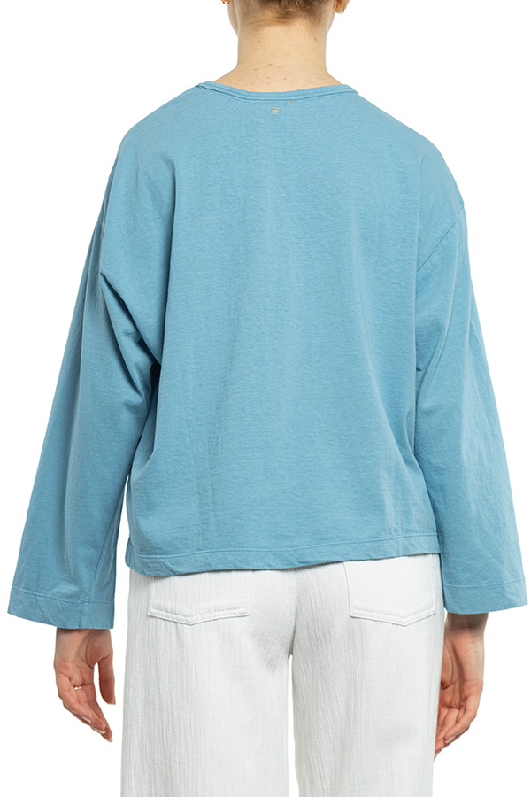 - Бавовняна футболка з довгими рукавами. Кругле горло, спущений рукав, вільного крою.