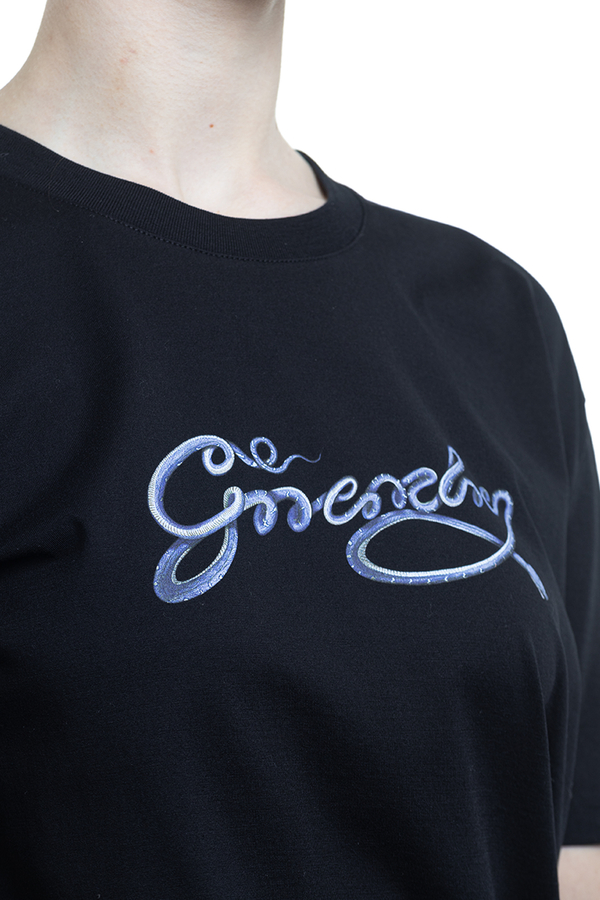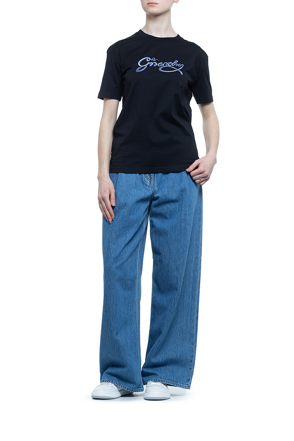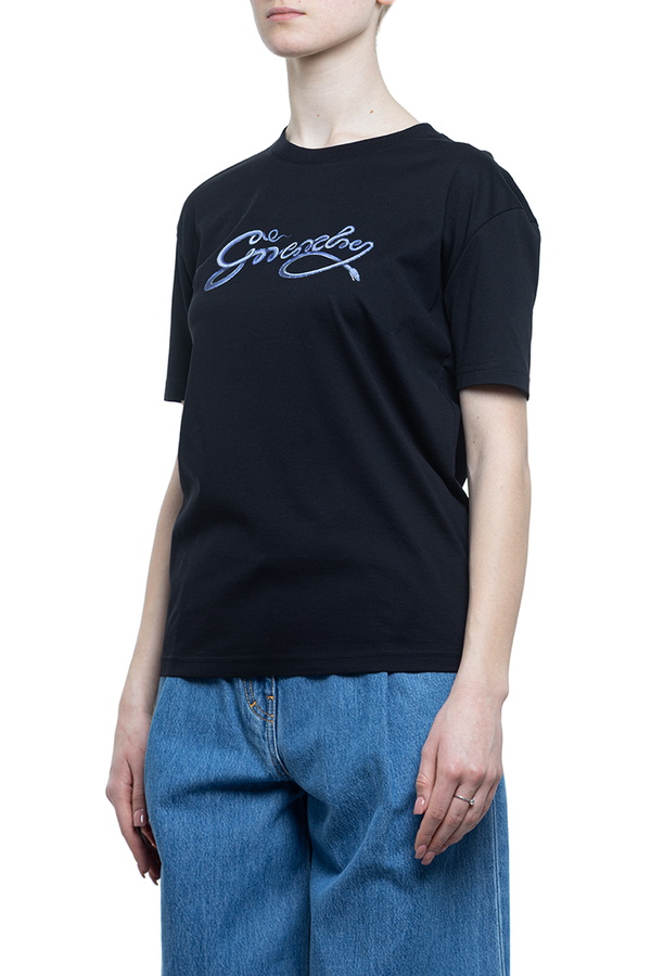 - Футболка з короткими рукавами, круглий виріз горловини, принт логотипу на грудях
