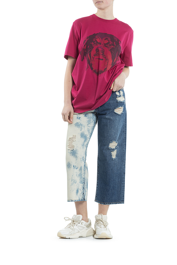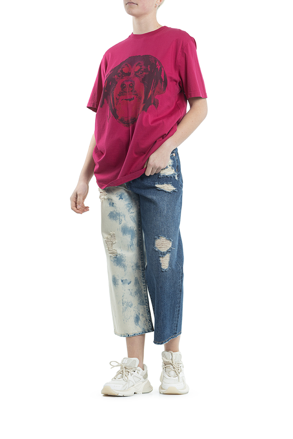 - Футболка з короткими рукавами і принтом собаки спереду.