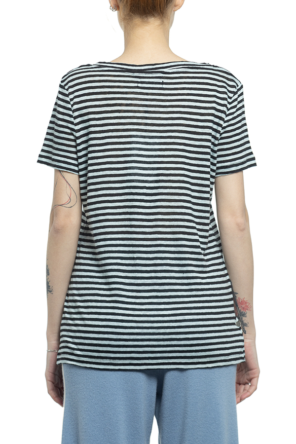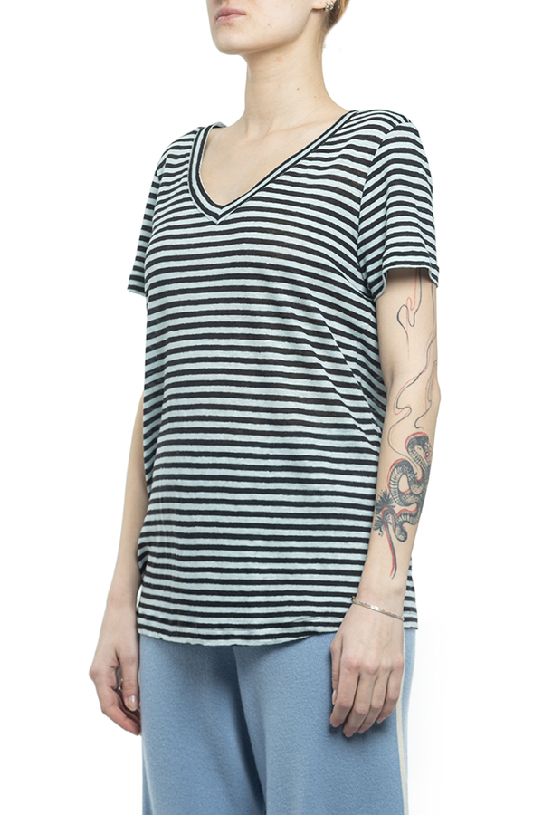 - Футболка з короткими рукавами і V-подібними вирізом горловини. Ровний поділ.