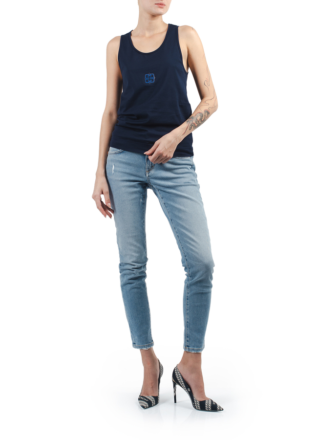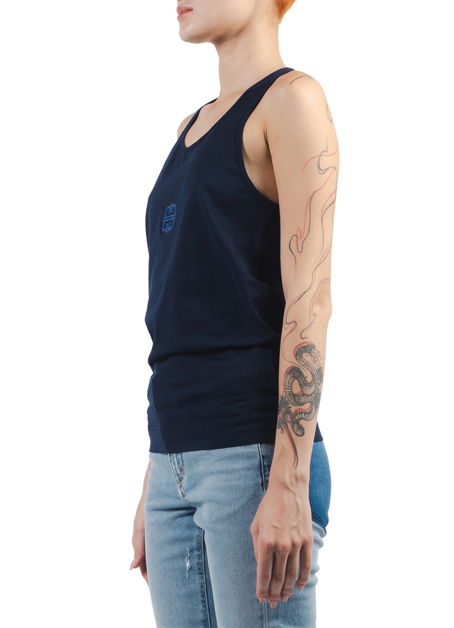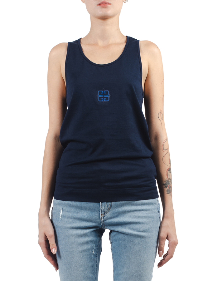 - Майка з круглим вирізом горловини, тиснений логотип спереду, вишитий логотип на спині