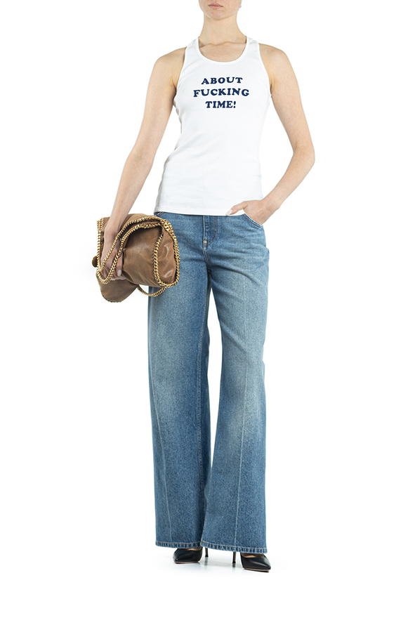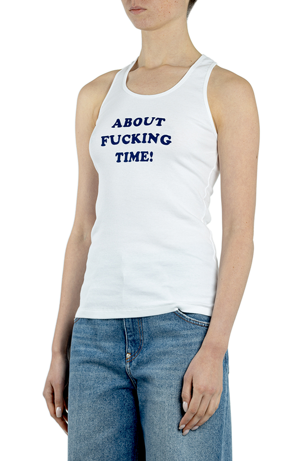 - Майка-борцівка в тонкий рубчик, круглий виріз, спереду бархатний напис