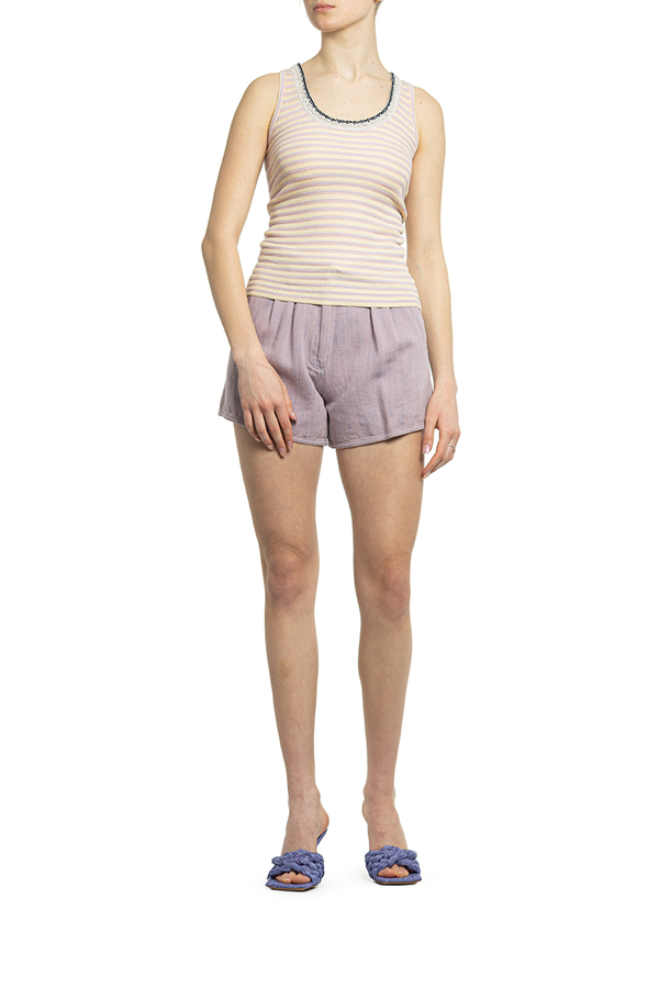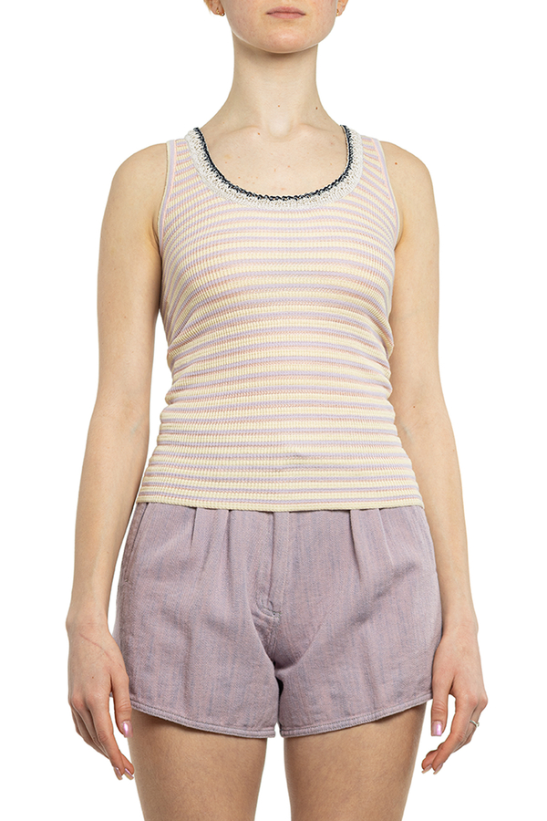 - Майка в'язана в смужку, навколо горловини пров'язана