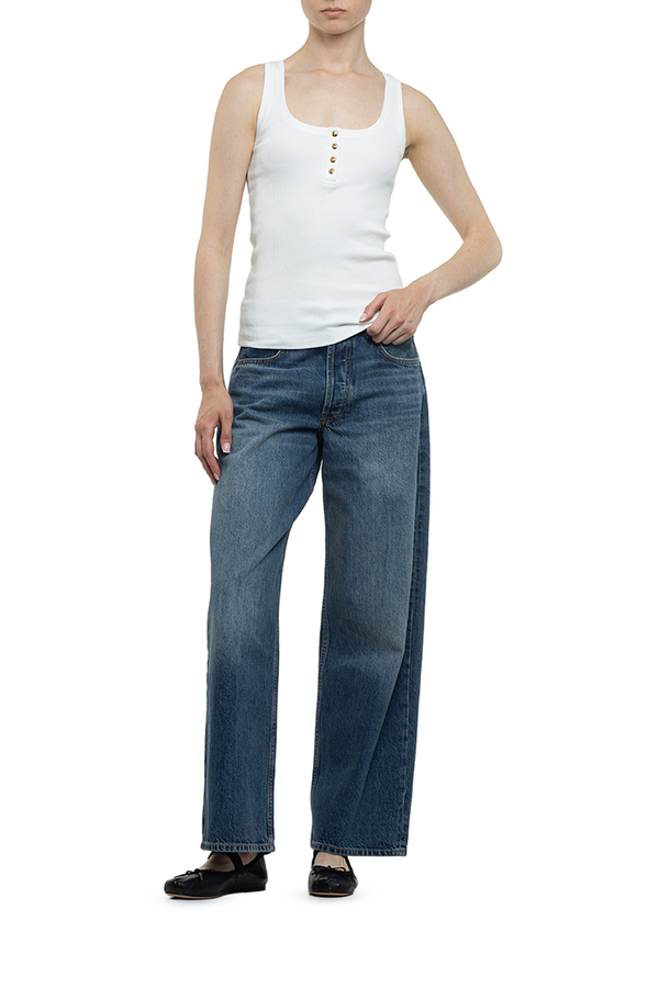 - Майка в рубчик, спереду вставка із золотискими гудзиками з монограмою