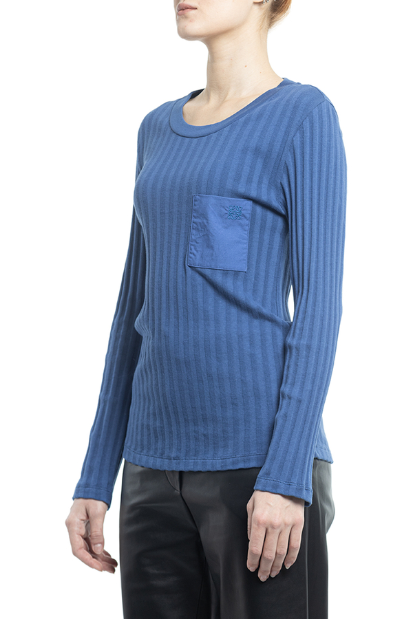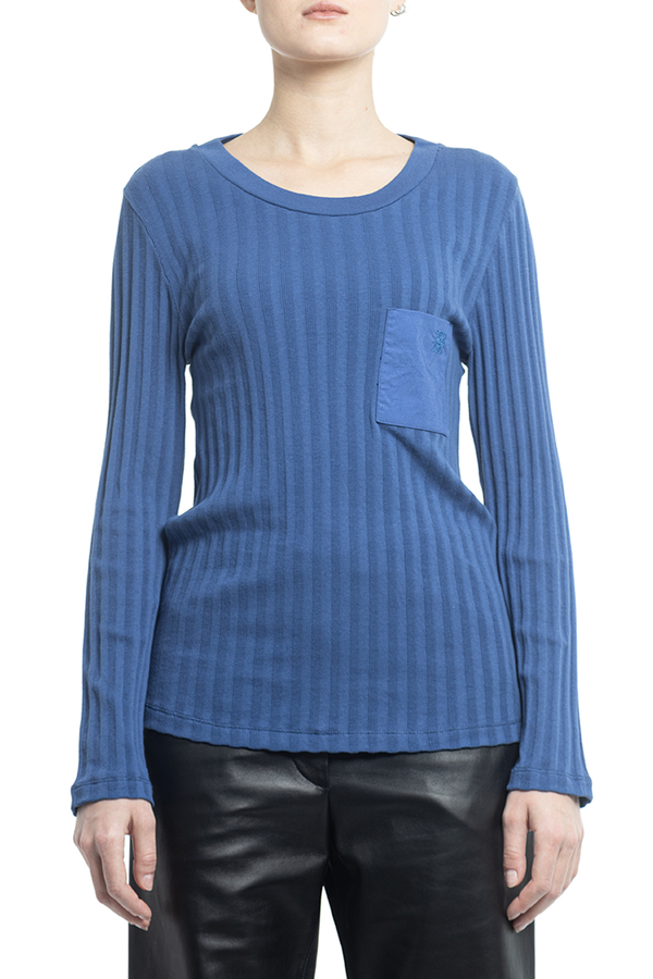 - Трикотажна футболка з довгими рукавами, тканина в рубчик. Контрастна нагрудна кишеня з анаграмою бренду.