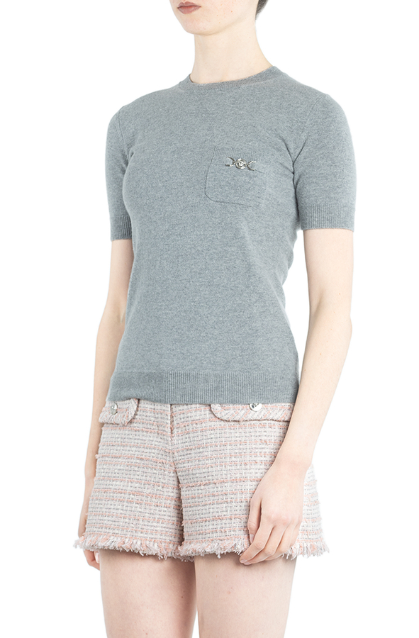 - Светр з короткими рукавами, круглий виріз горловини, нагрудна накладна кишеня з металевою емблемою Medusa