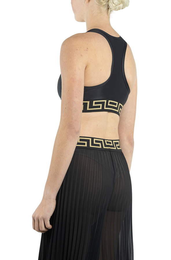 - Спортивний топ з логотипом від Versace. Візерунок Greca і вишивка Medusa.