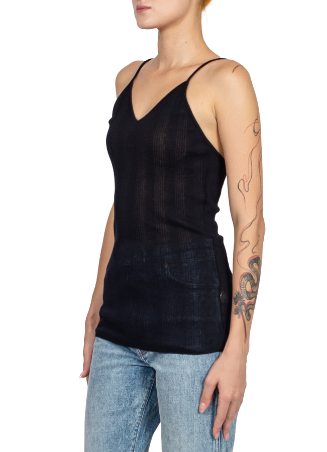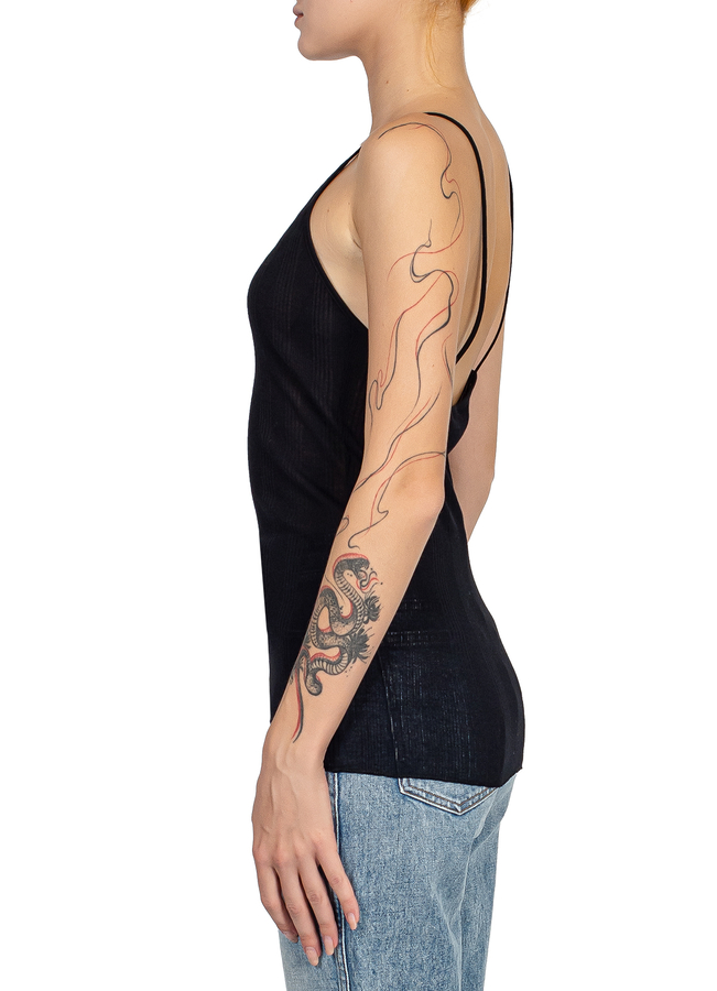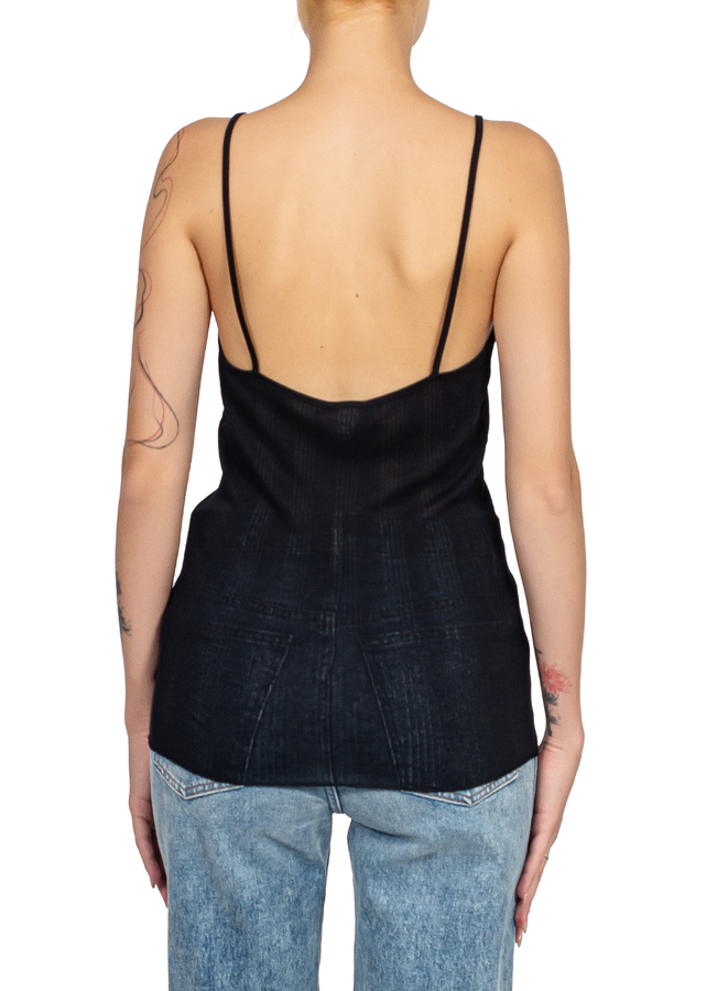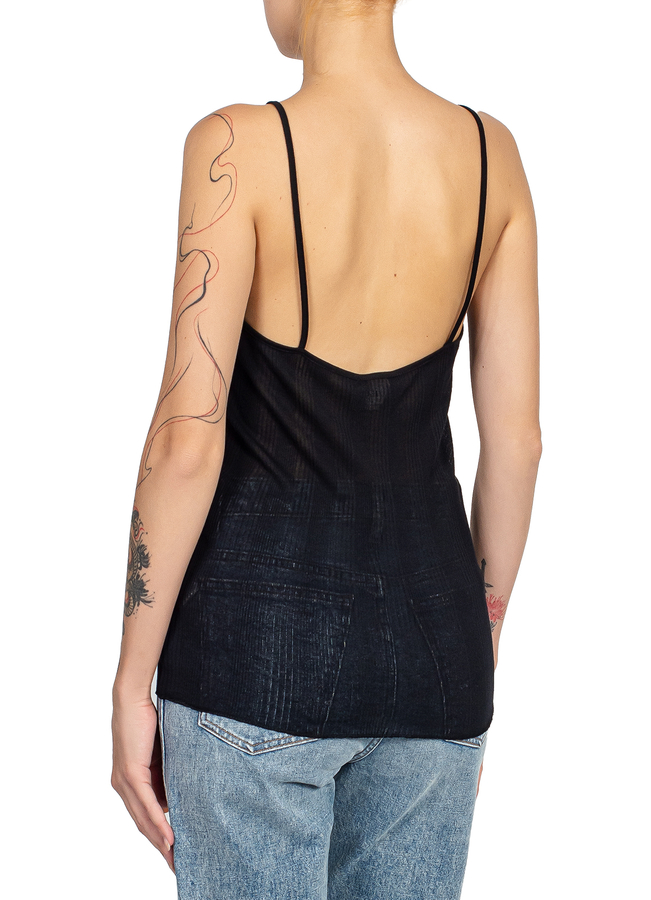 - Напівпрозорий топ на тонких бретелях з відкритою спиною