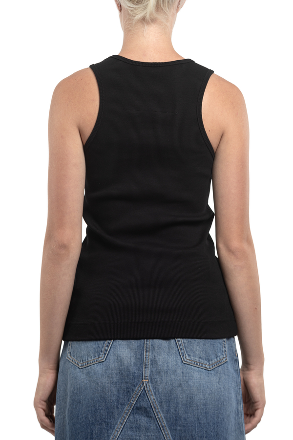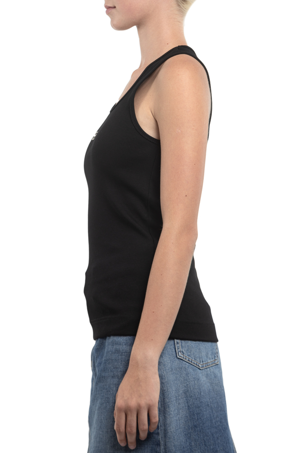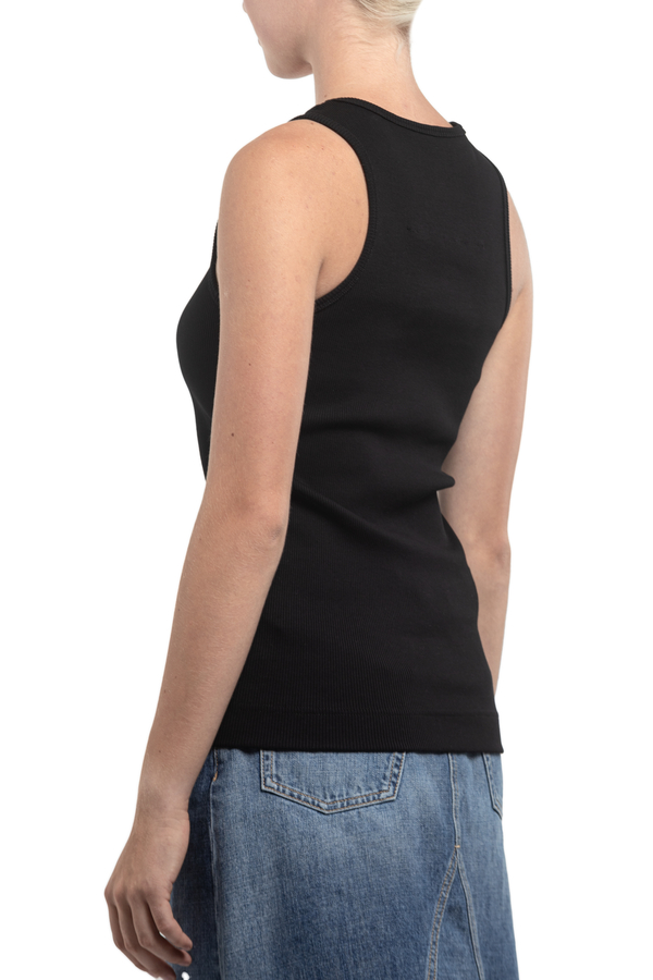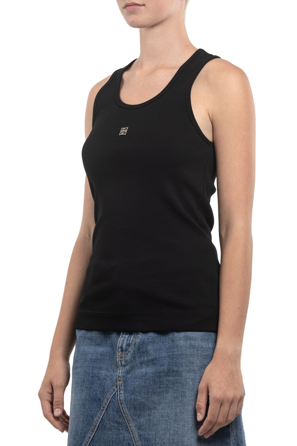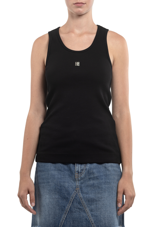 - Майка в рубчик, круглий виріз, приталений крій, металева деталь 4G спереду