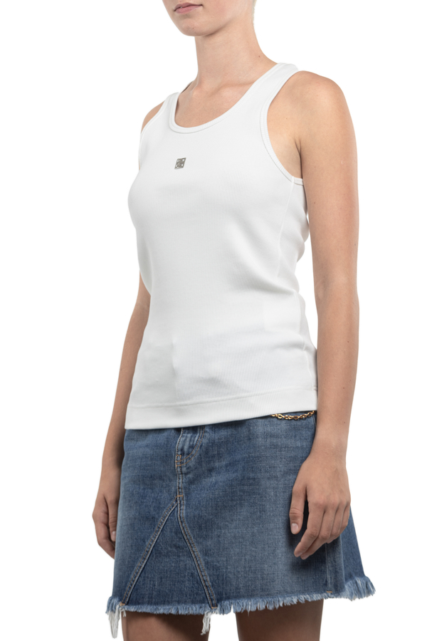 - Майка в рубчик, круглий виріз, приталений крій, металева деталь 4G спереду