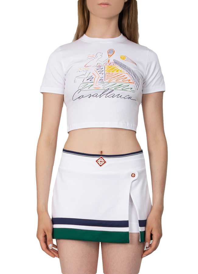 - Біла бавовняна укорочена футболка Casablanca з круглим вирізом і багатоколірним принтом спереду