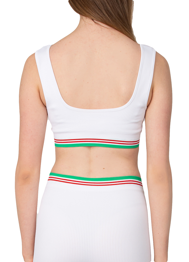- Безшовний ребристий топ, смугова деталізація, нашивка з логотипом спереду