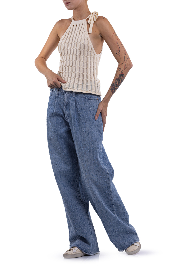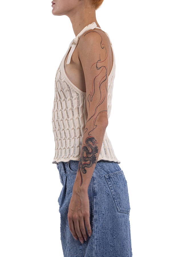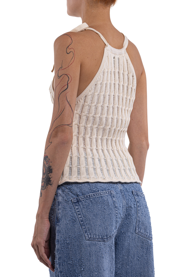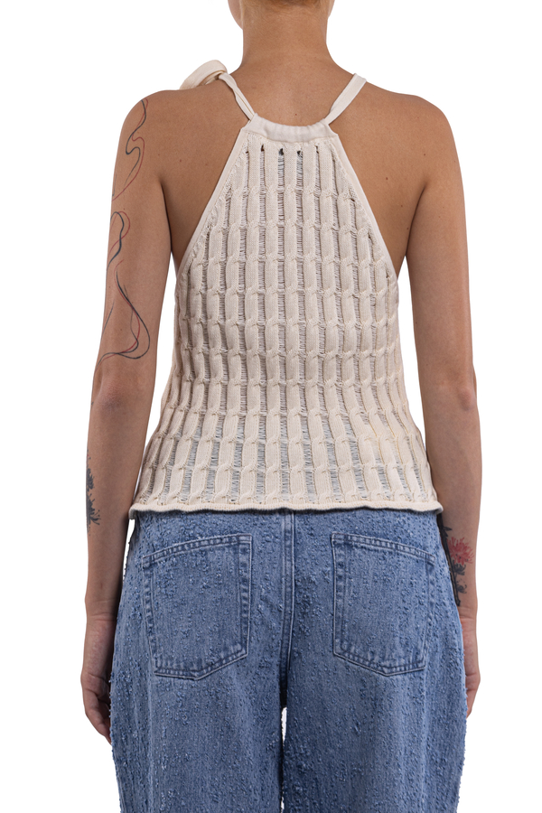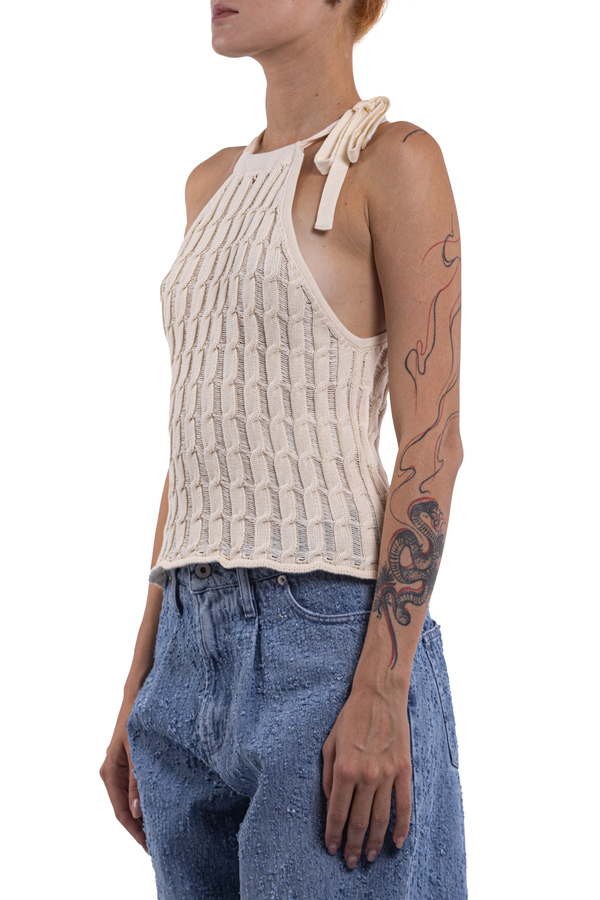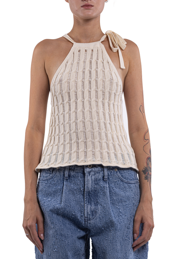 - Трикотажний топ из зав’язкою на шиї, відкриті плечі