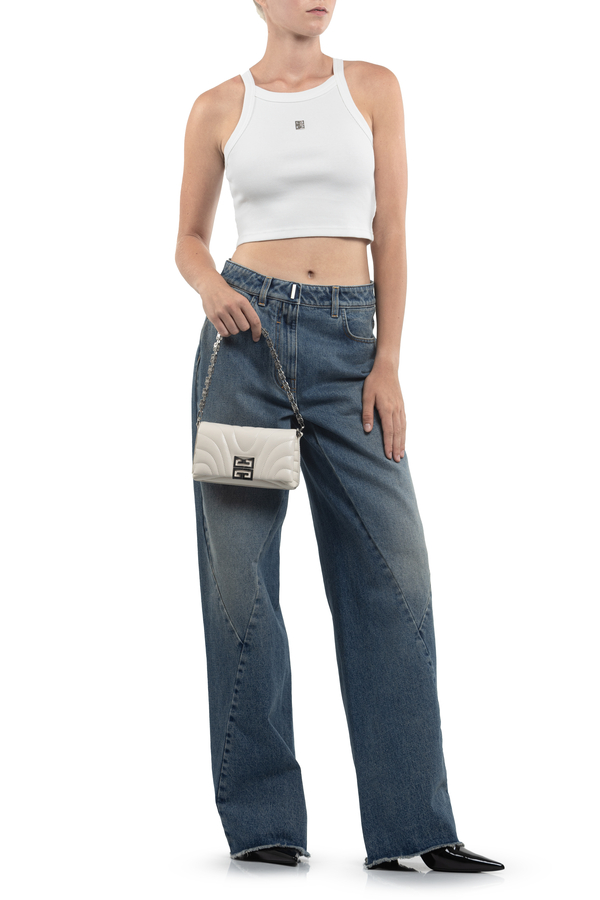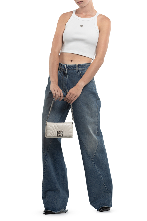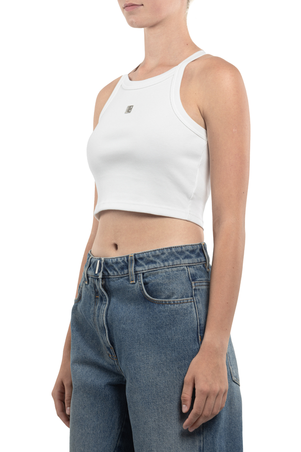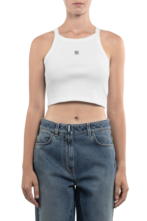 - Топ в рубчик, тонкі бретелі, укорочений крій, металева частина 4G спереду