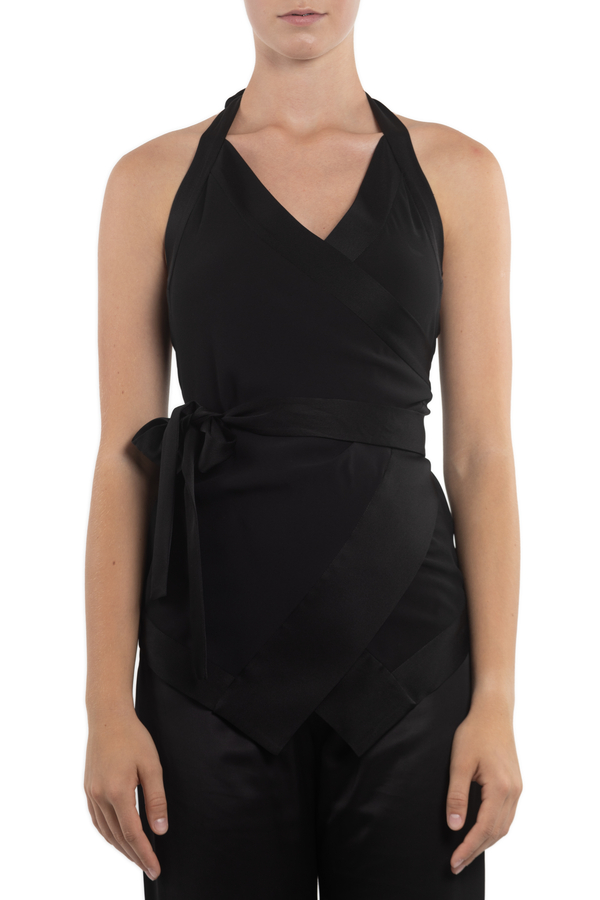 - Топ на запах, зав'язки навколо шиї, асиметричний поділ, відкрита спина