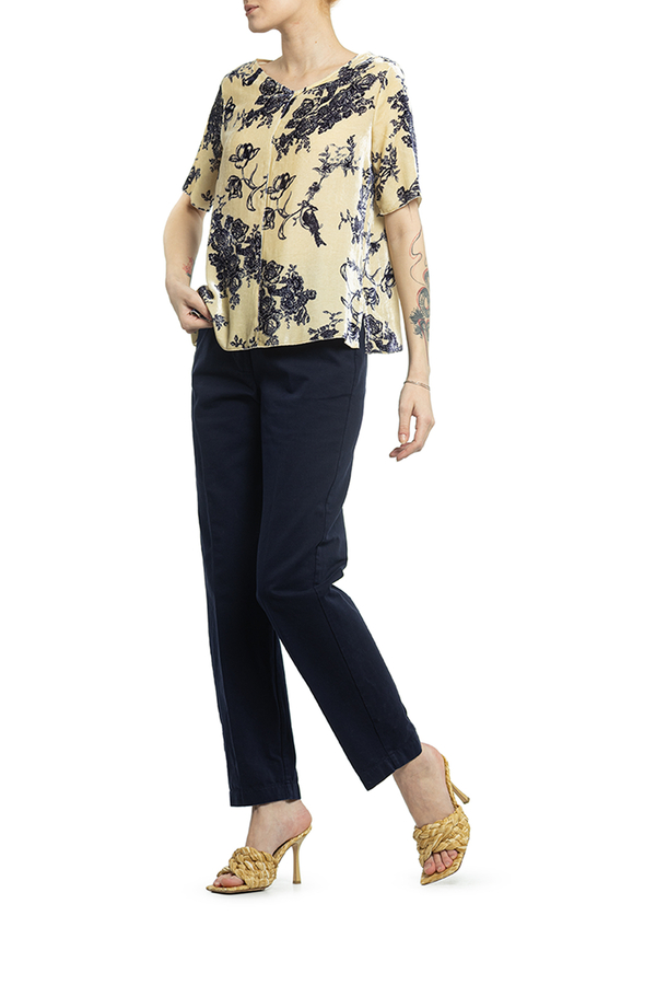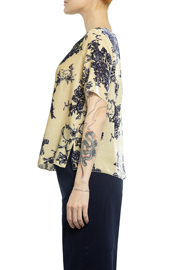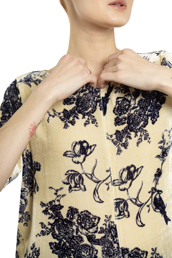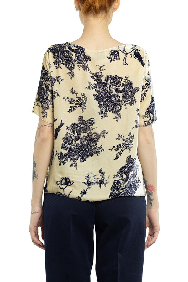 - Велюровий топ з короткими рукавами. Принт в квіточку.