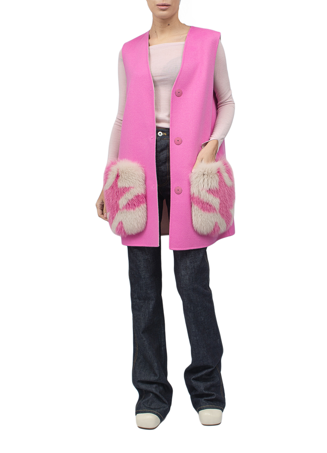 - Жилет з вовни оздоблений хутром лисиці.