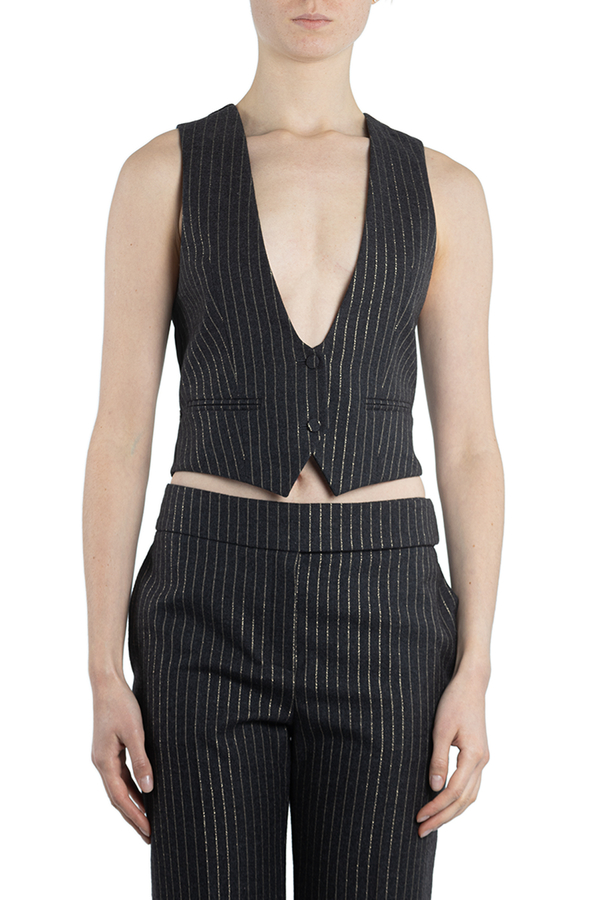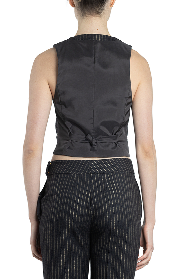 - Жилет в золоту смужку спереді, позаду з однотонної тканини.