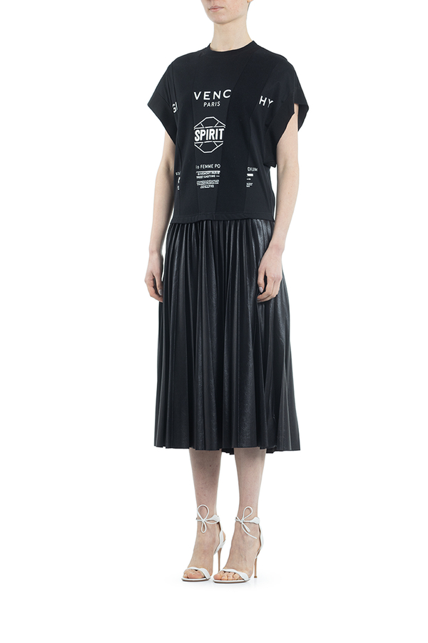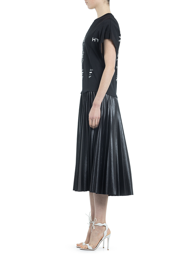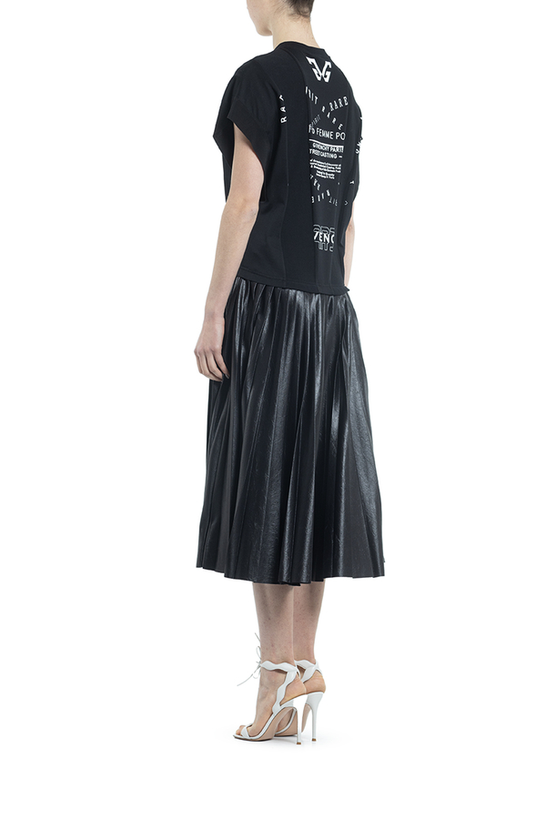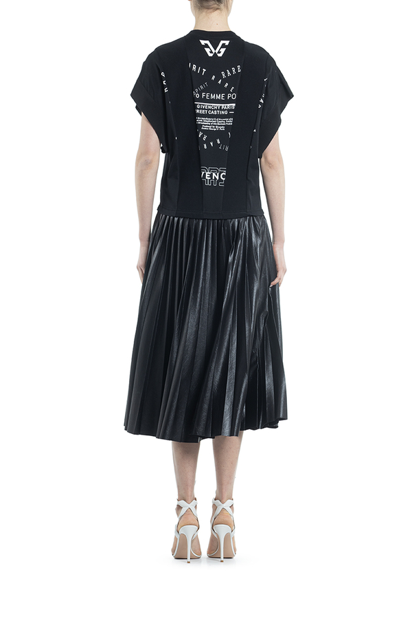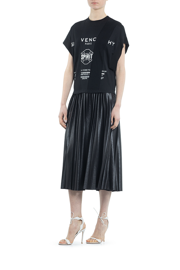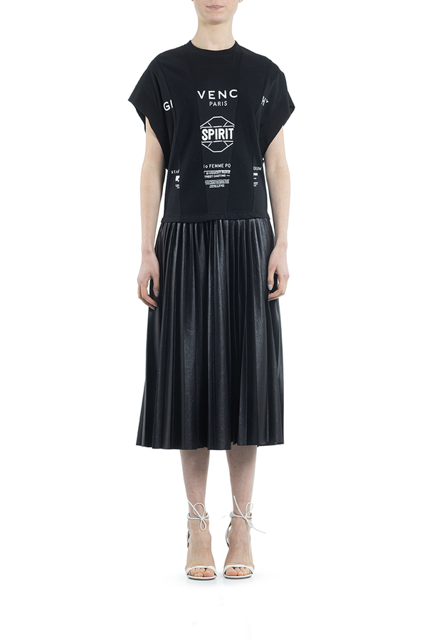 - Сукня довга з коротким рукавом. Верх- трикотаж з написами, низ- плісировка