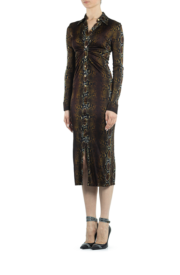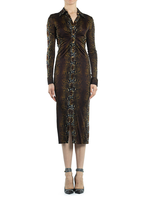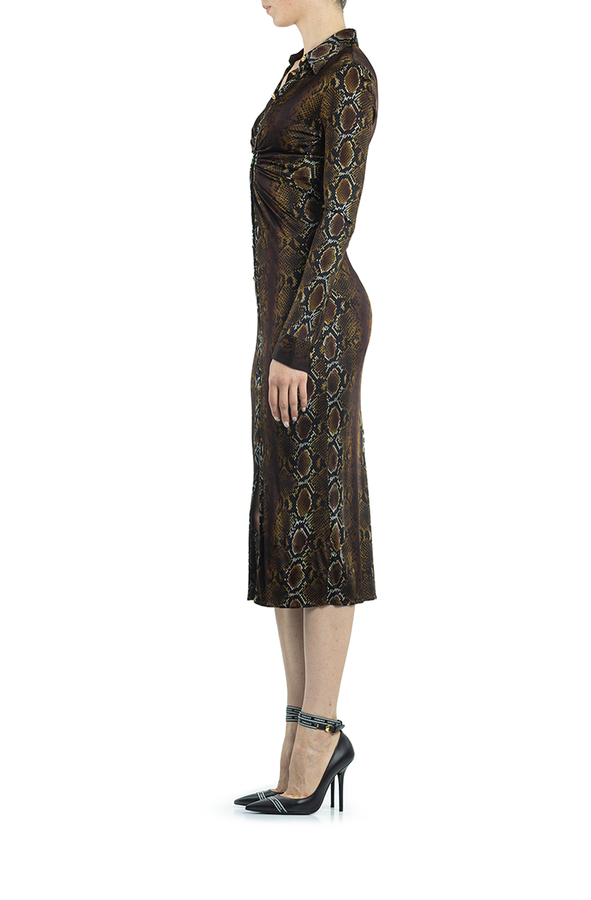 - Сукня довга коричнева на гудзиках з пітоновим принтом
