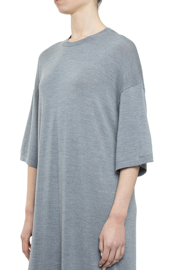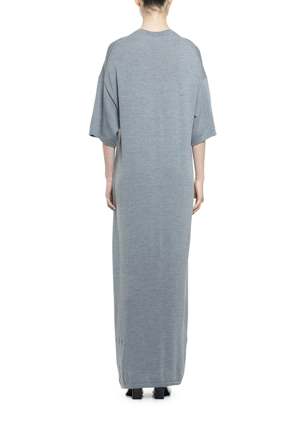 - Довга сукня вільного крою, круглий виріз горловини, занижена лінія плечей
