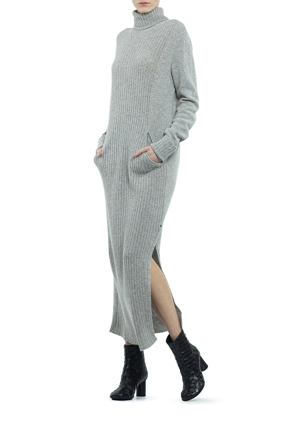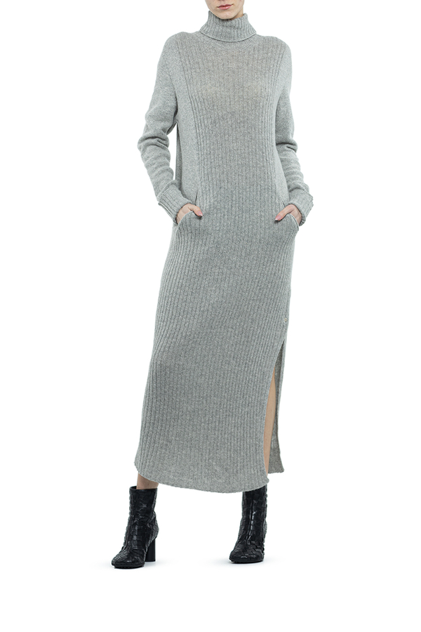 - В'язана довга сукня з високим коміром.