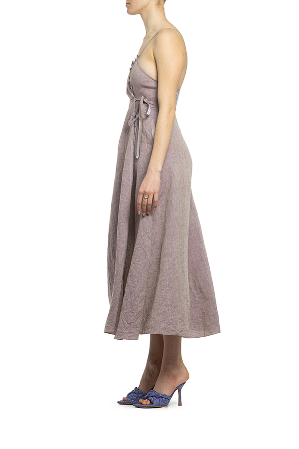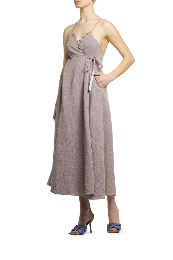 - Сарафан з органічної білизни та віскози. Довгий, на тонких бретелях, відкрита спина.