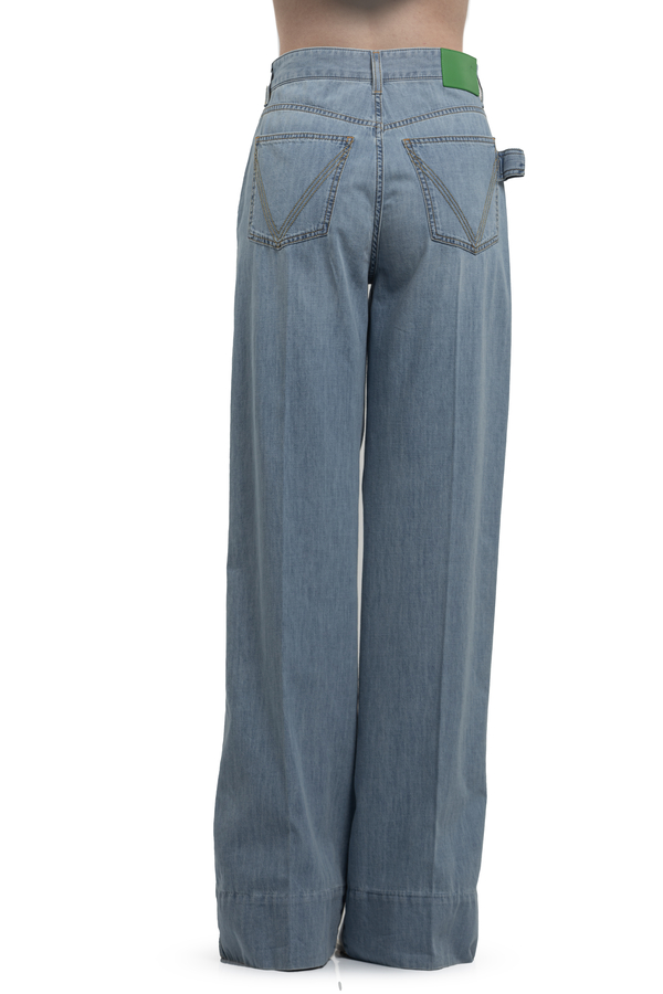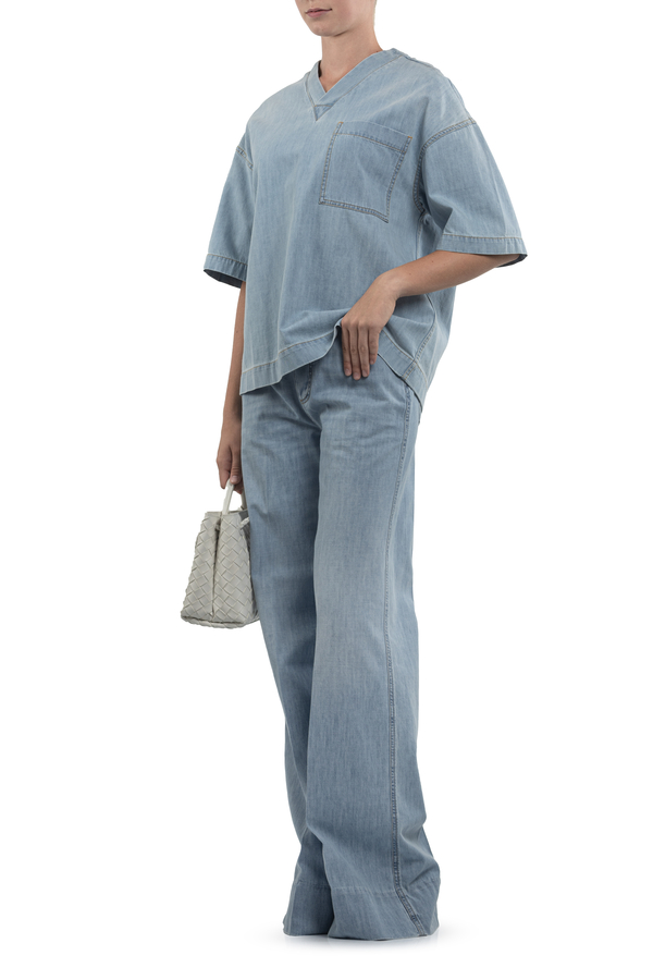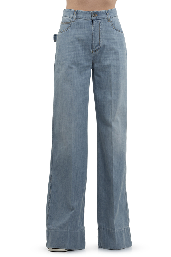 - Джинси з ефектом потертості, шлевки для ременя, три бокові кишені, дві задні накладні кишені, шкіряна нашивка ззаду, застібка на гудзики