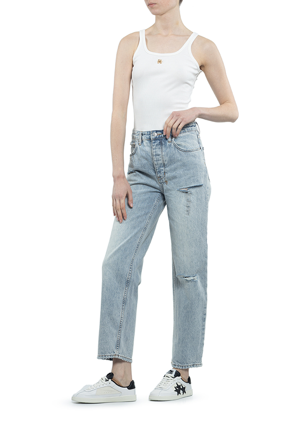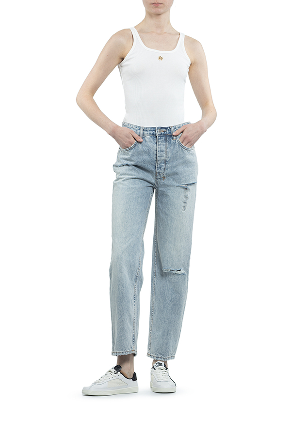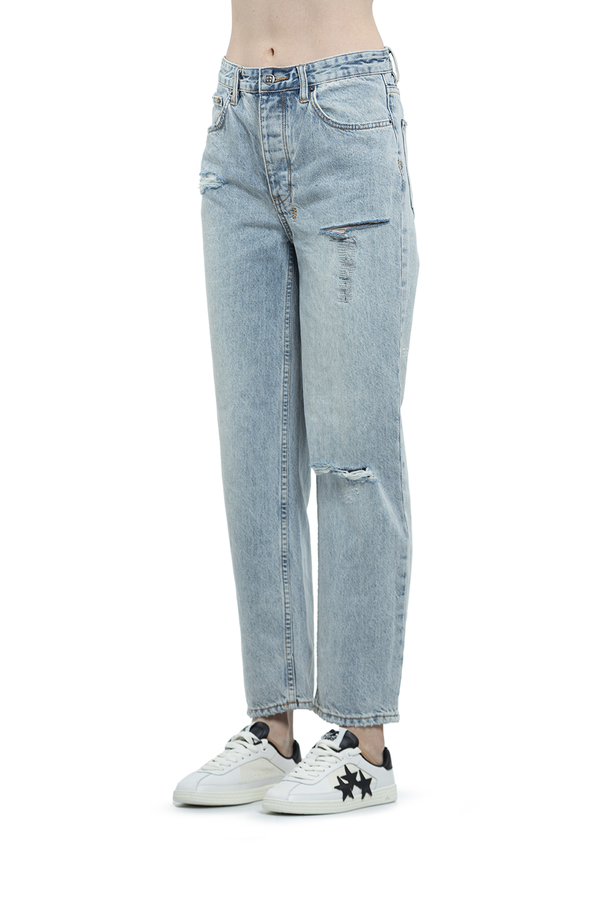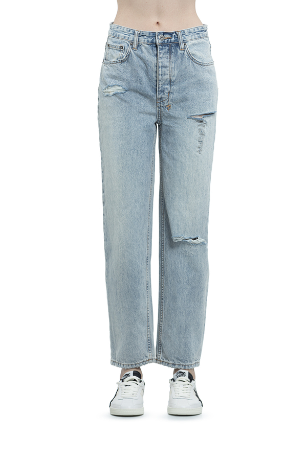 - Джинсы Brooklyn. Ефект знебарвлення, модель з прорізами, прямий крій, завищена талія, петлі для ременя, застібка на блискавці і гудзику спереду і класична пятікарманная модель.