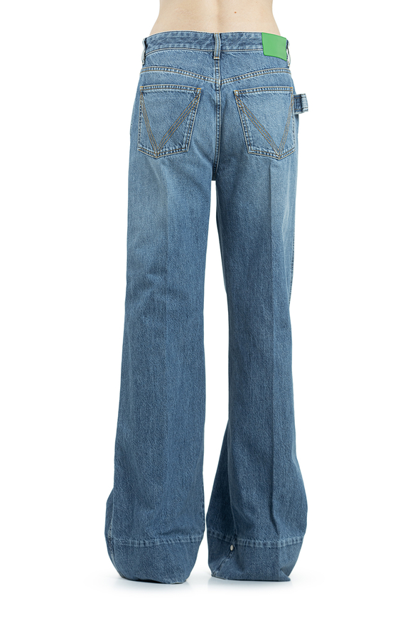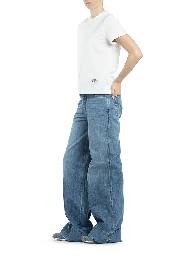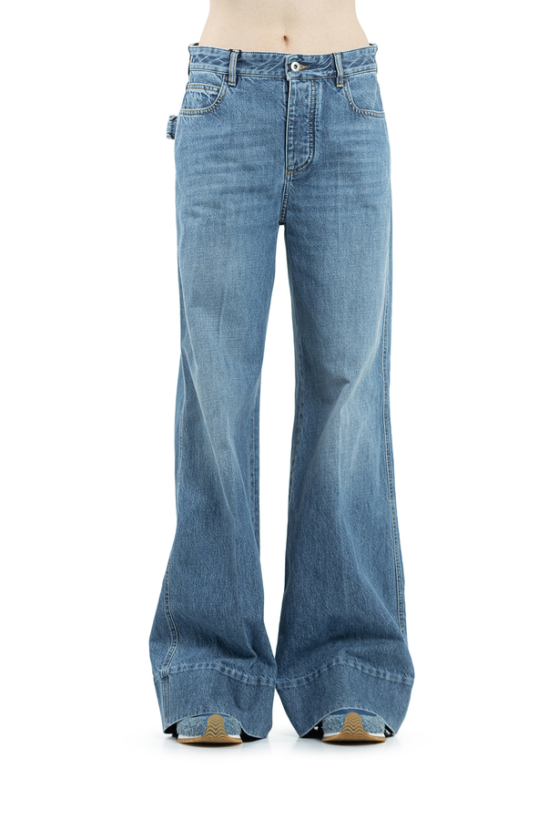 - Джинси з ефектом потертості, класичні п’ять кишень, шлевки для ременя, застібка на блискавку та ґудзик, патч логотипа ззаду