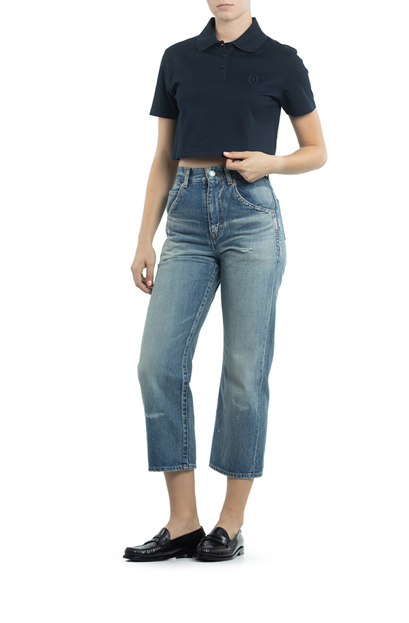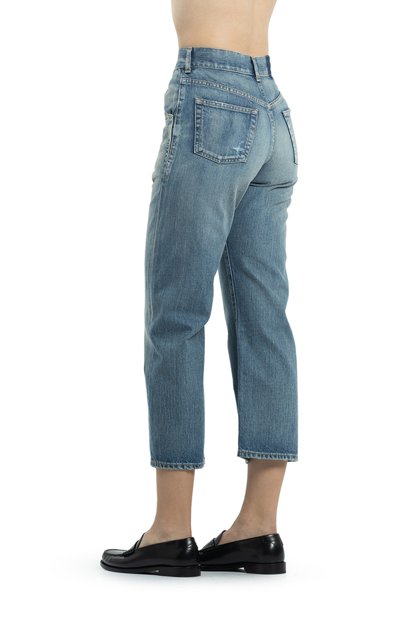 - Джинси широкого прямого крою. Короткої довжини, завищена талія, застібка на блискавці і гудзику спереду.