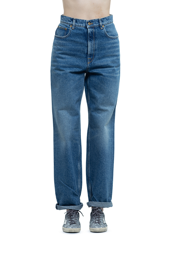 - Джинси з класичними п’ятьма кишенями, ефект потертості, застібка на блискавку та гудзик з гравіюванням логотипу, петлі для ременя, ззаду фірмова подвійна золотиста зірка