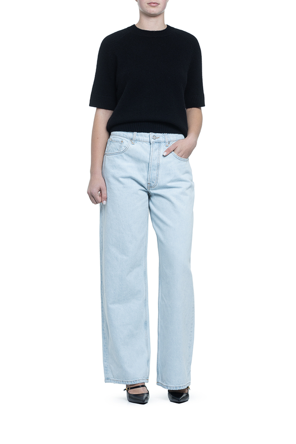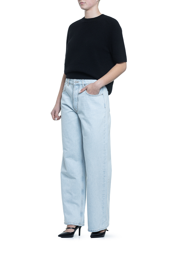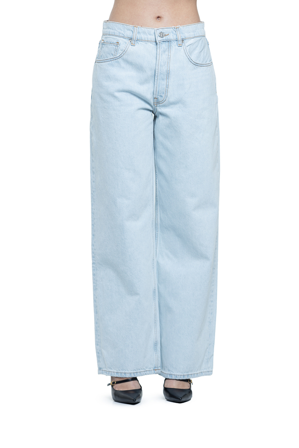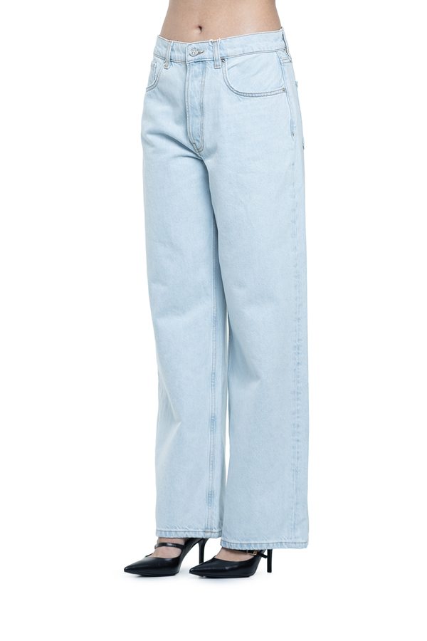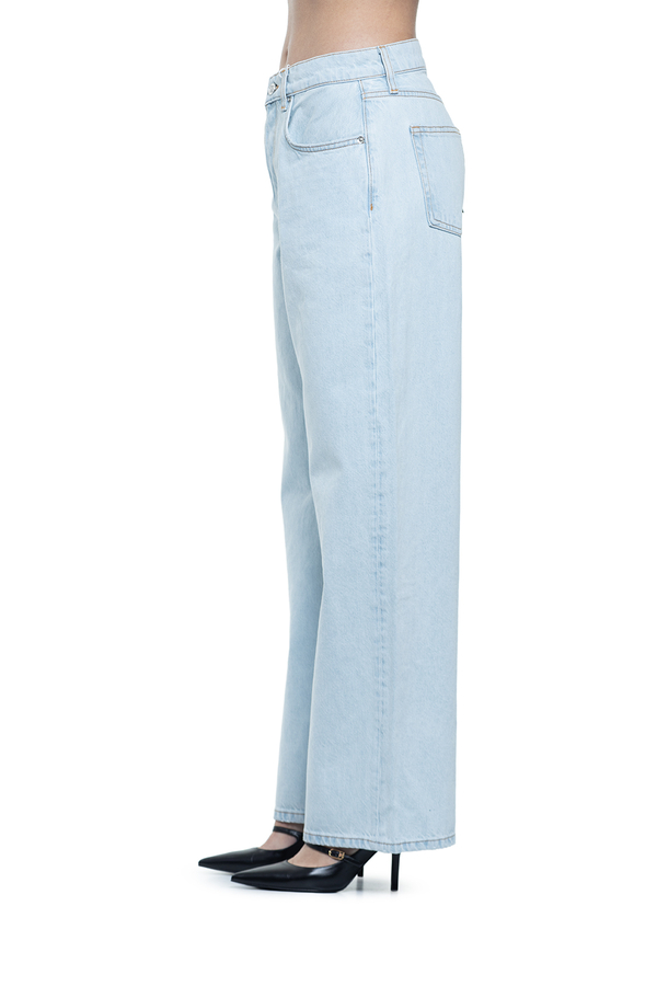 - Джинси з класичними п’ятьма кишенями, петлі для ременя, застібка на гудзик та блискавку, ззаду контрастна шкіряна нашивка з монограмою