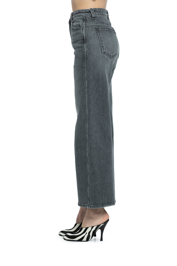 - Джинси з класичними п'ятьма кишенями, широкі штанини, шлевки для ременя на поясі, прихована застібка на блискавку і один видимий гудзик