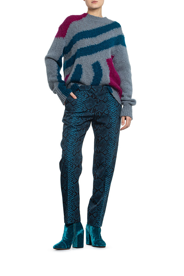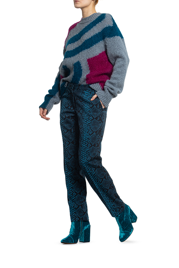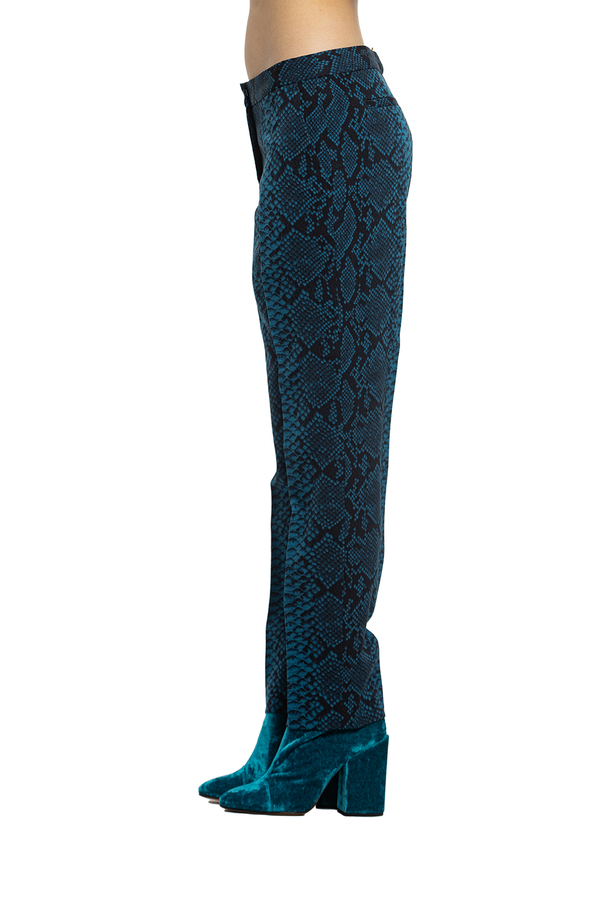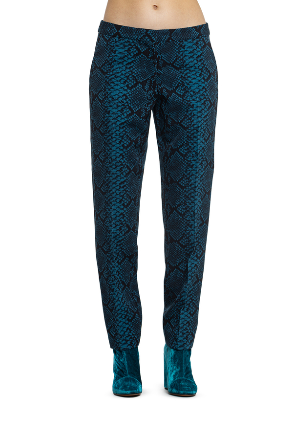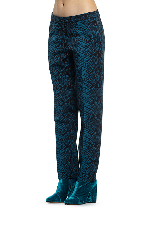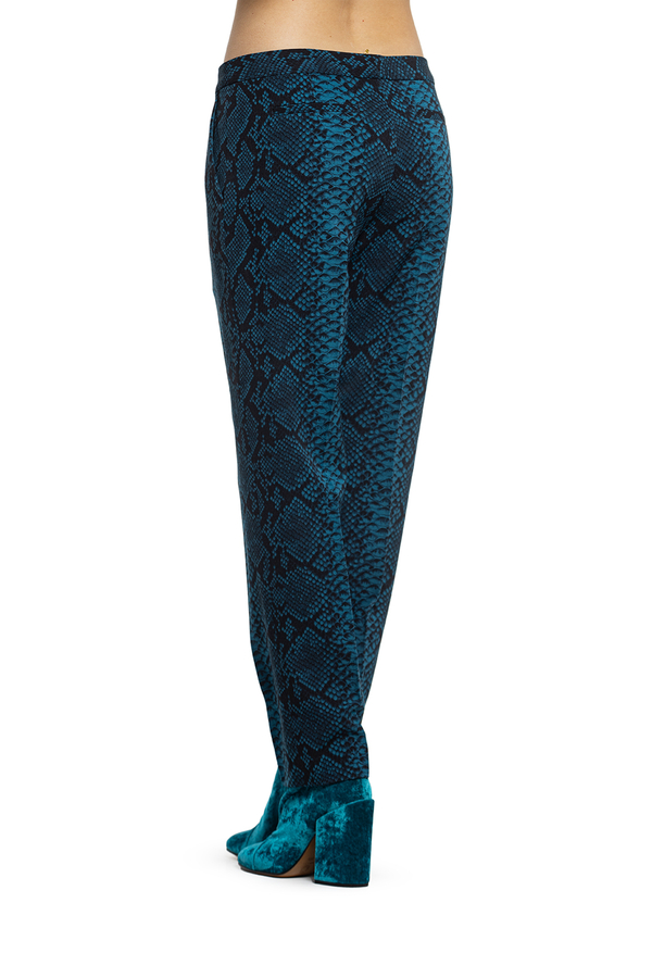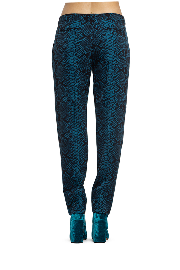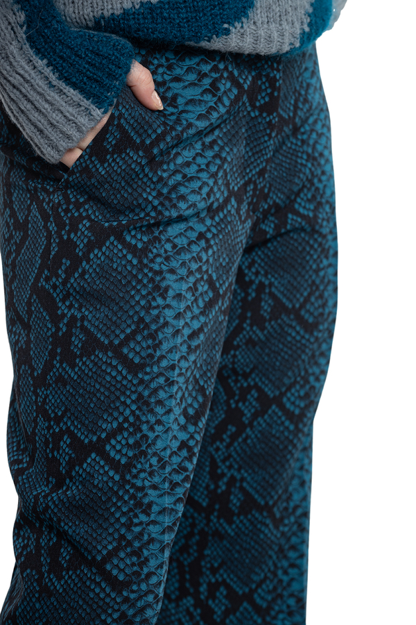 - Завужені брюки з принтом пітона. Дві врезні кишені.