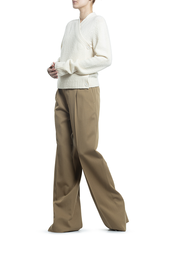 - Широкі штани прямого крою. Поясні петлі, приховане кріплення спереду, дві бічні кишені, одна задня кишеня на клапані.