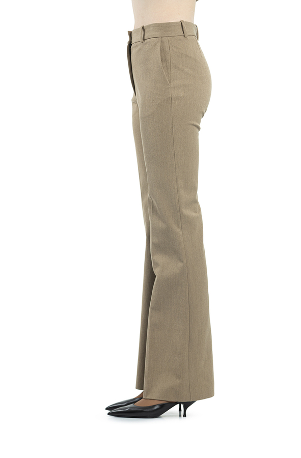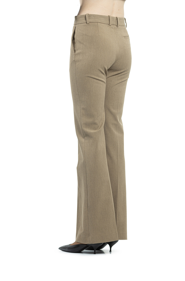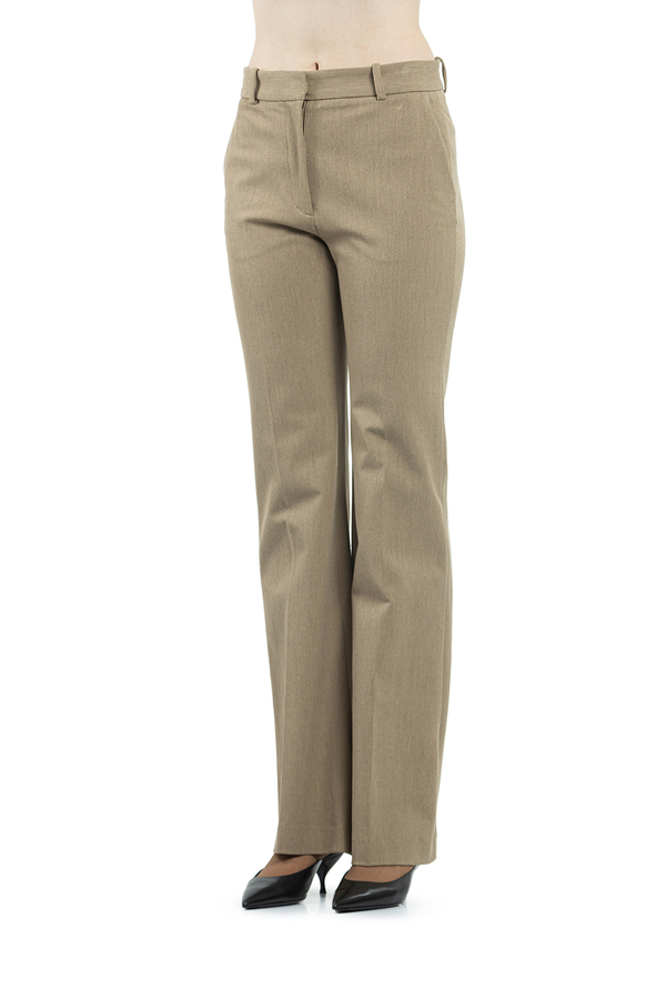 - Штани-кльош з бавовняної суміші. Дві бічні врізні кишені, шлевки для пояса, застібка на гачок і блискавку.