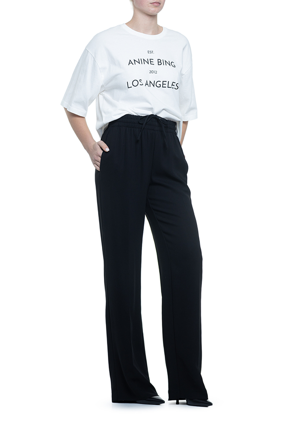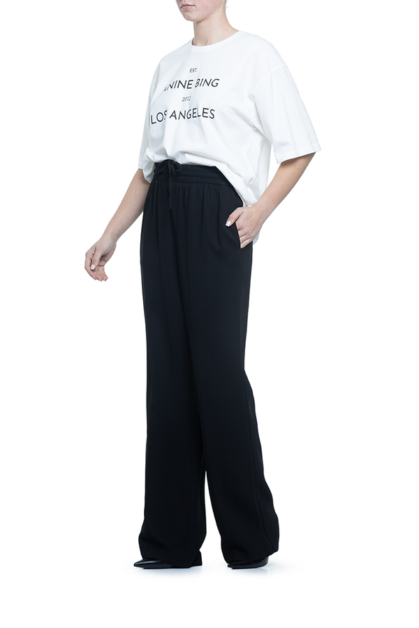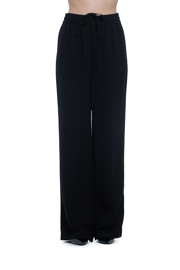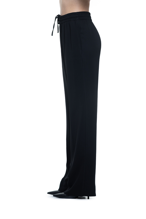 Штани вільного крою, еластичний пояс на шнурку, дві кишені у бічних швах
