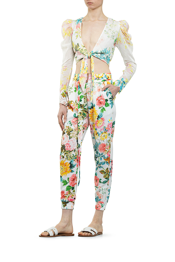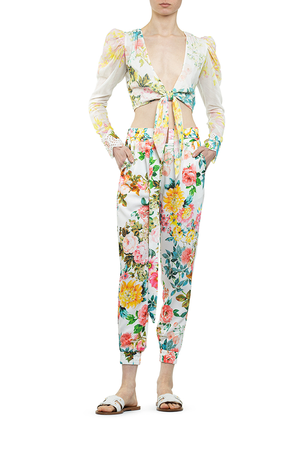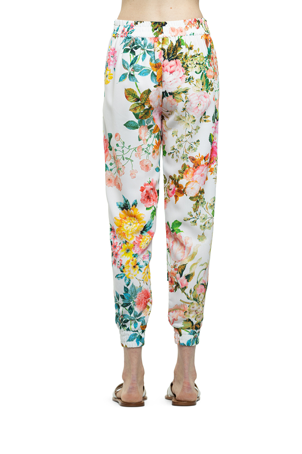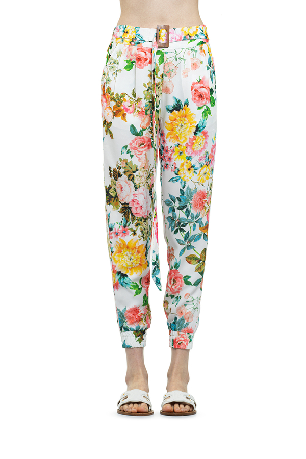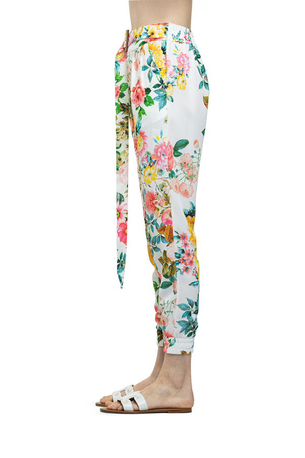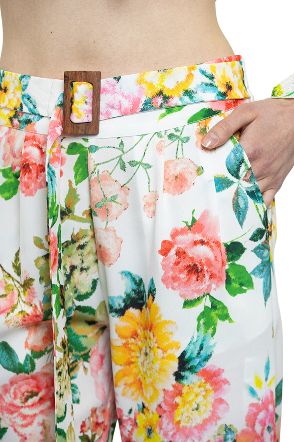 - Штани білі у великих квітах на манжетах і з поясом