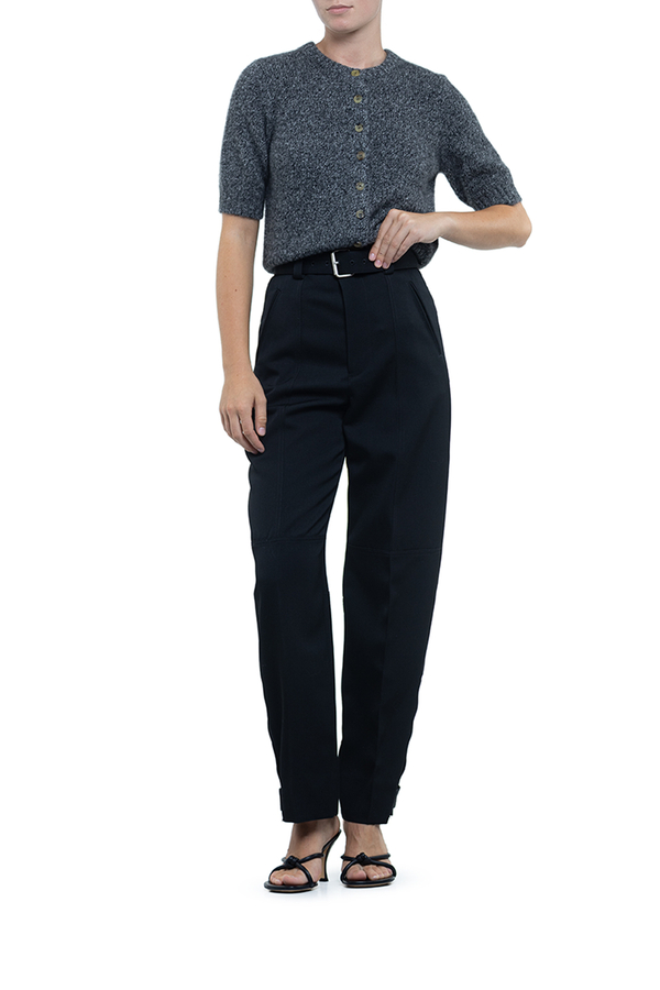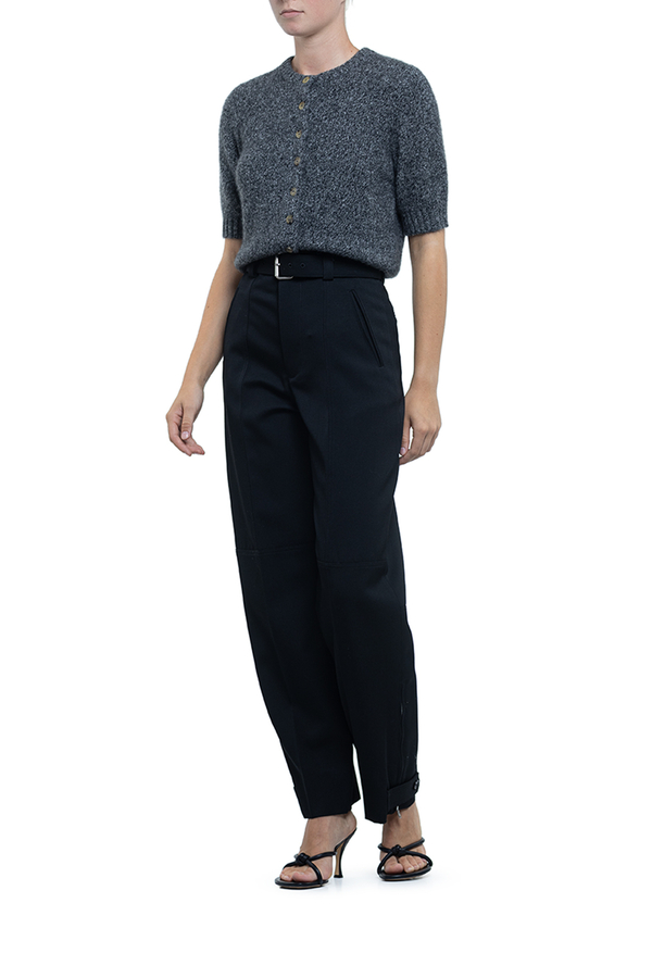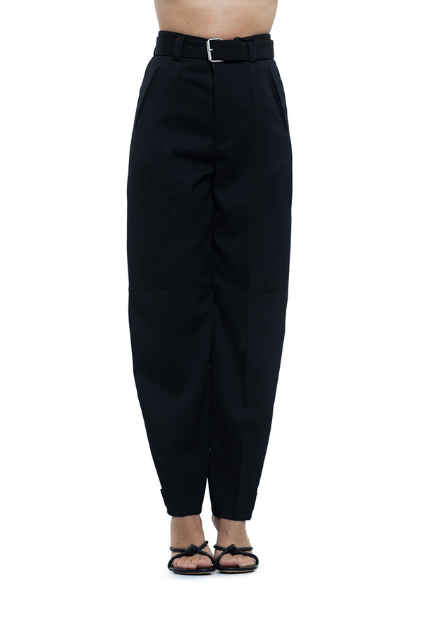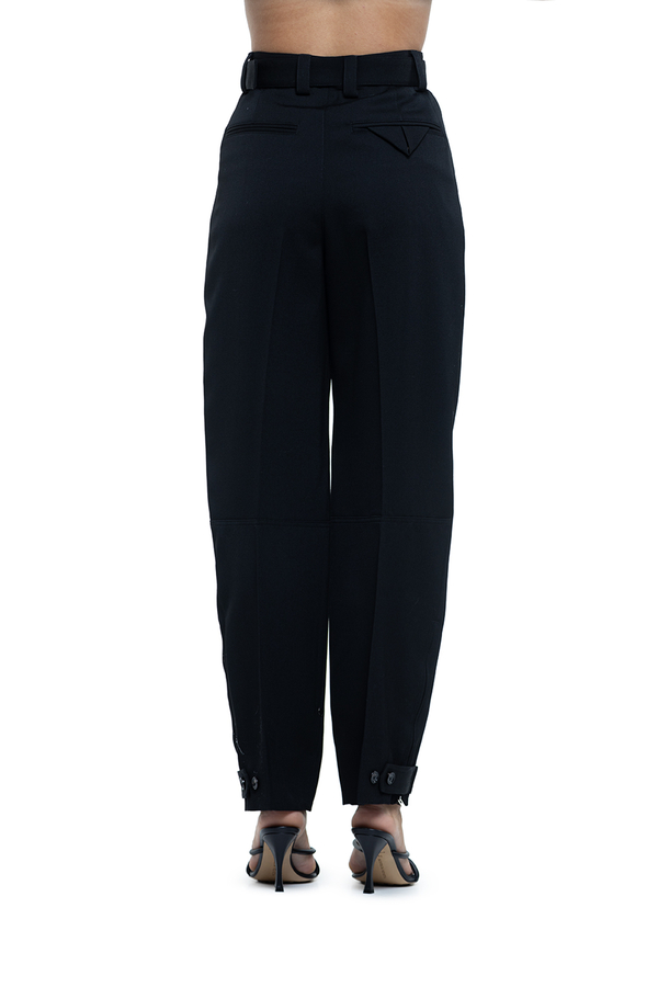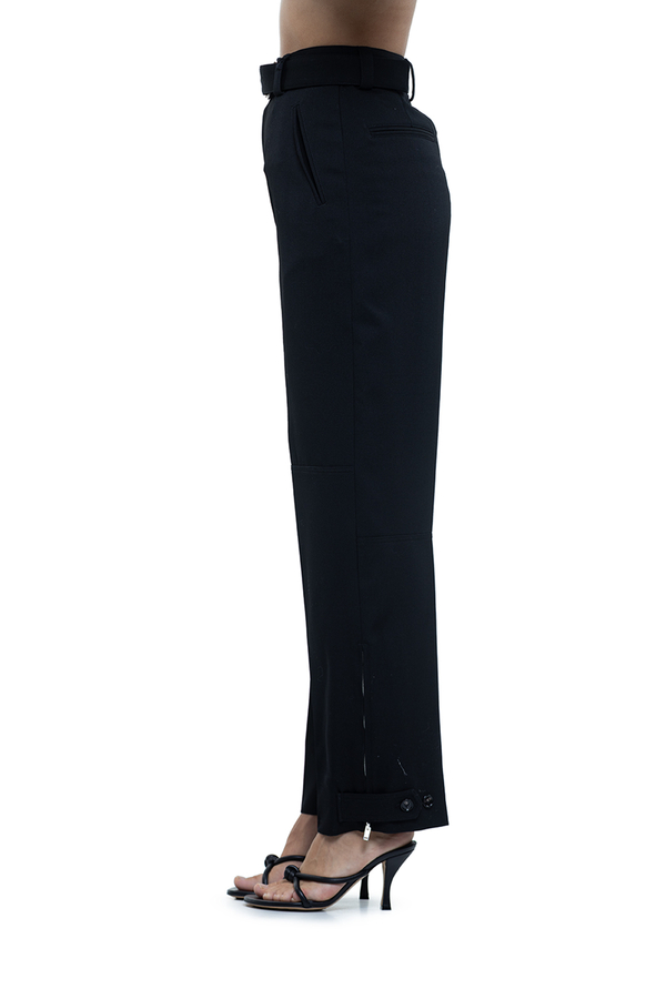 - Штани, звужені до низу, знімний регульований пояс, дві прорізні кишені по боках та дві ззаду, регульована застібка-блискавка і кнопки знизу