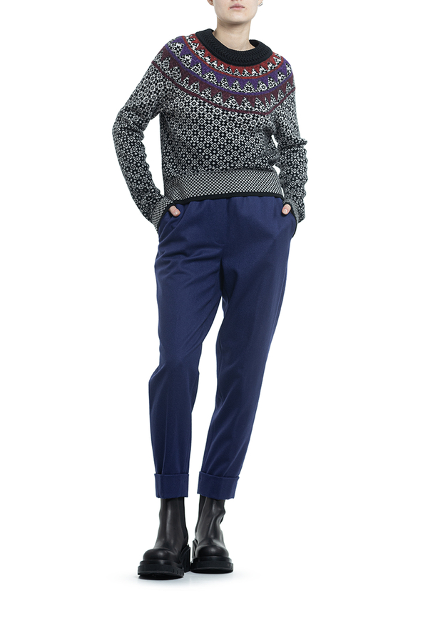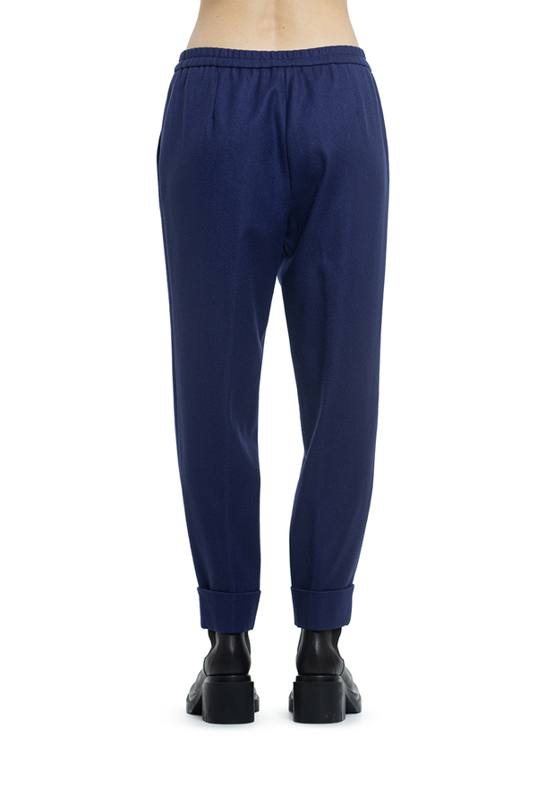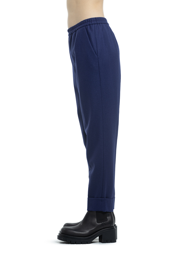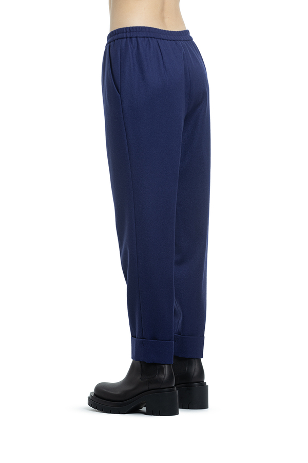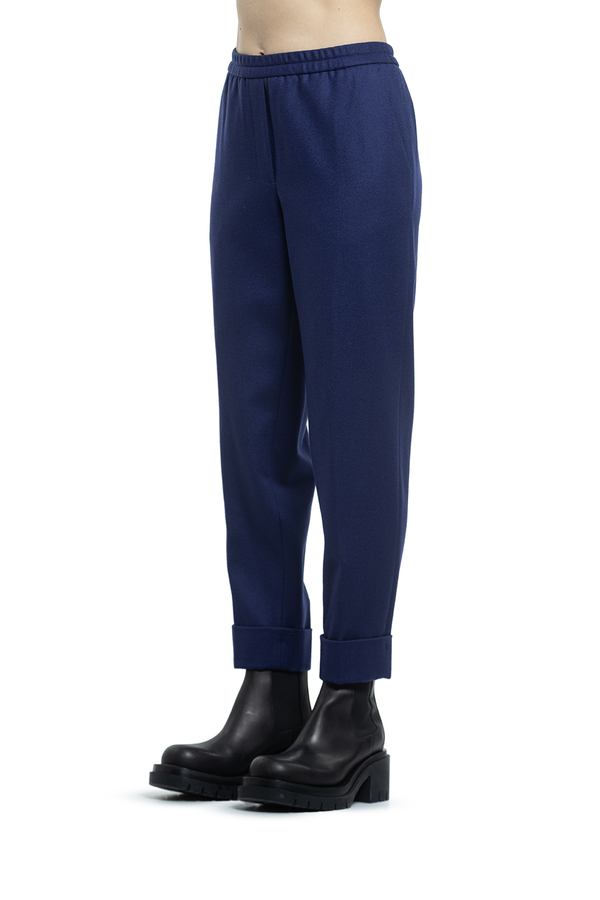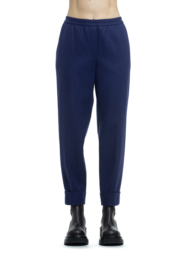 - Штани прямого крою з підгорнутими манжетами знизу. З еластичним поясом.