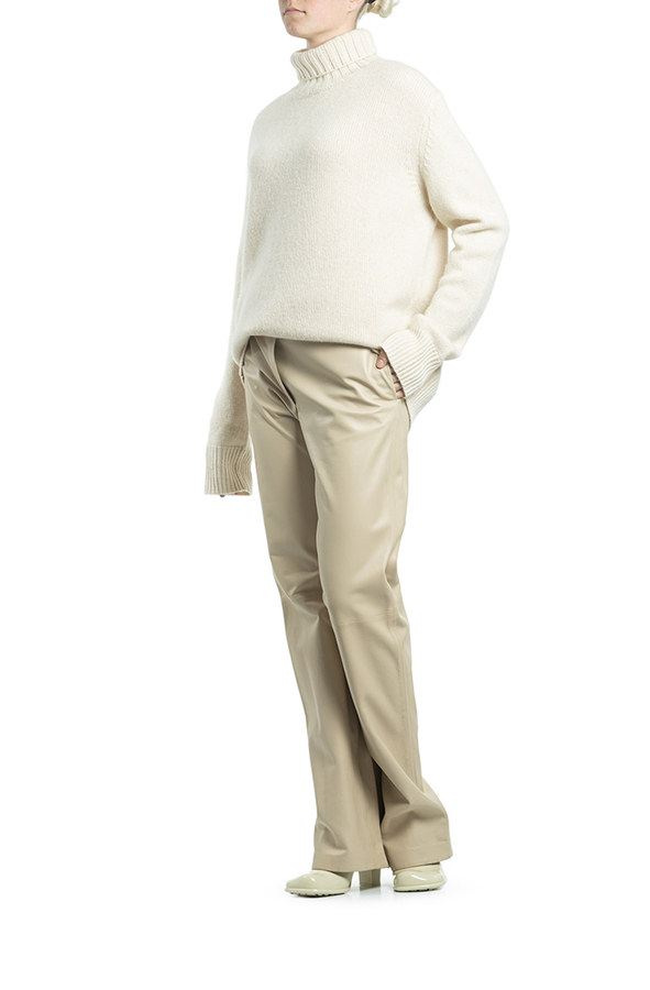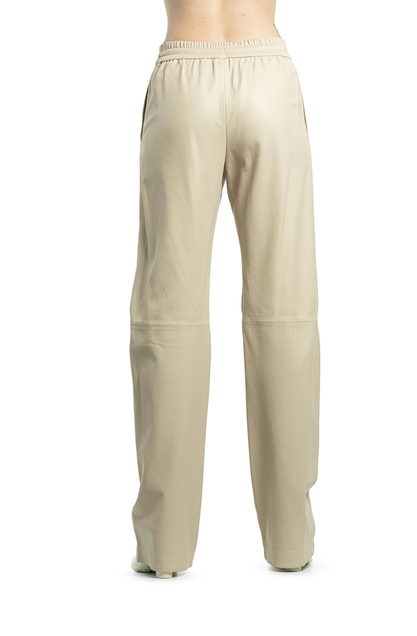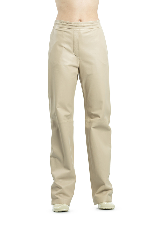 - Довгі прямі штани на резинці, з двома прорізними кишенями.